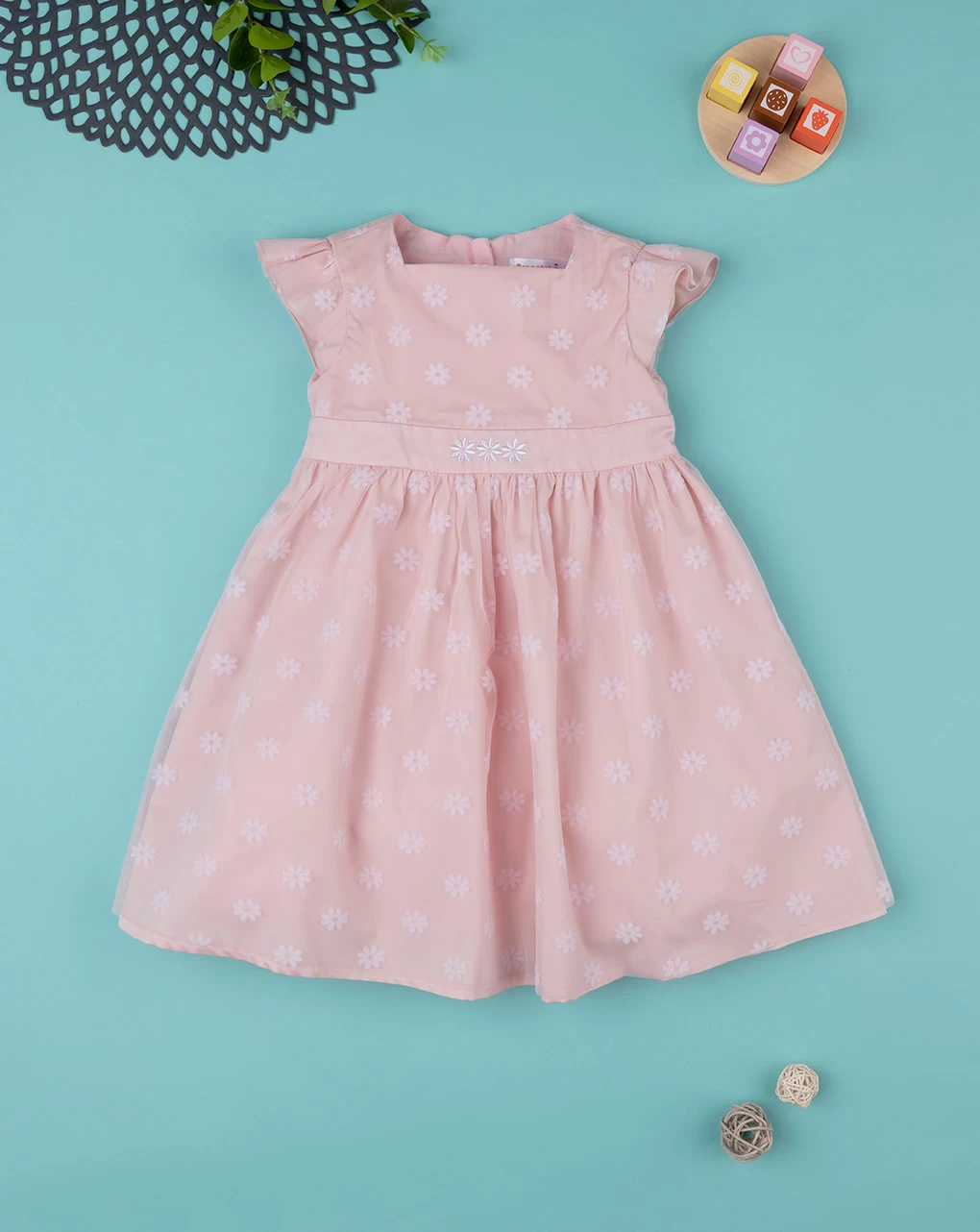 Abito cotton satin elegante da bambina. Il capo si sviluppa in rosa antico ed è arricchito da fantasia allover bianca a contrasto. Il tulle rende romantico e raffinato questo abito che presenta anche fascia rosa in vita. Accessori non in vendita. La confezione contiene solo il capo di abbigliamento.