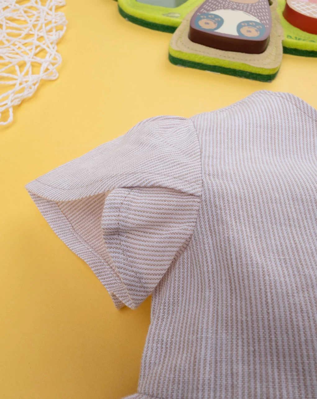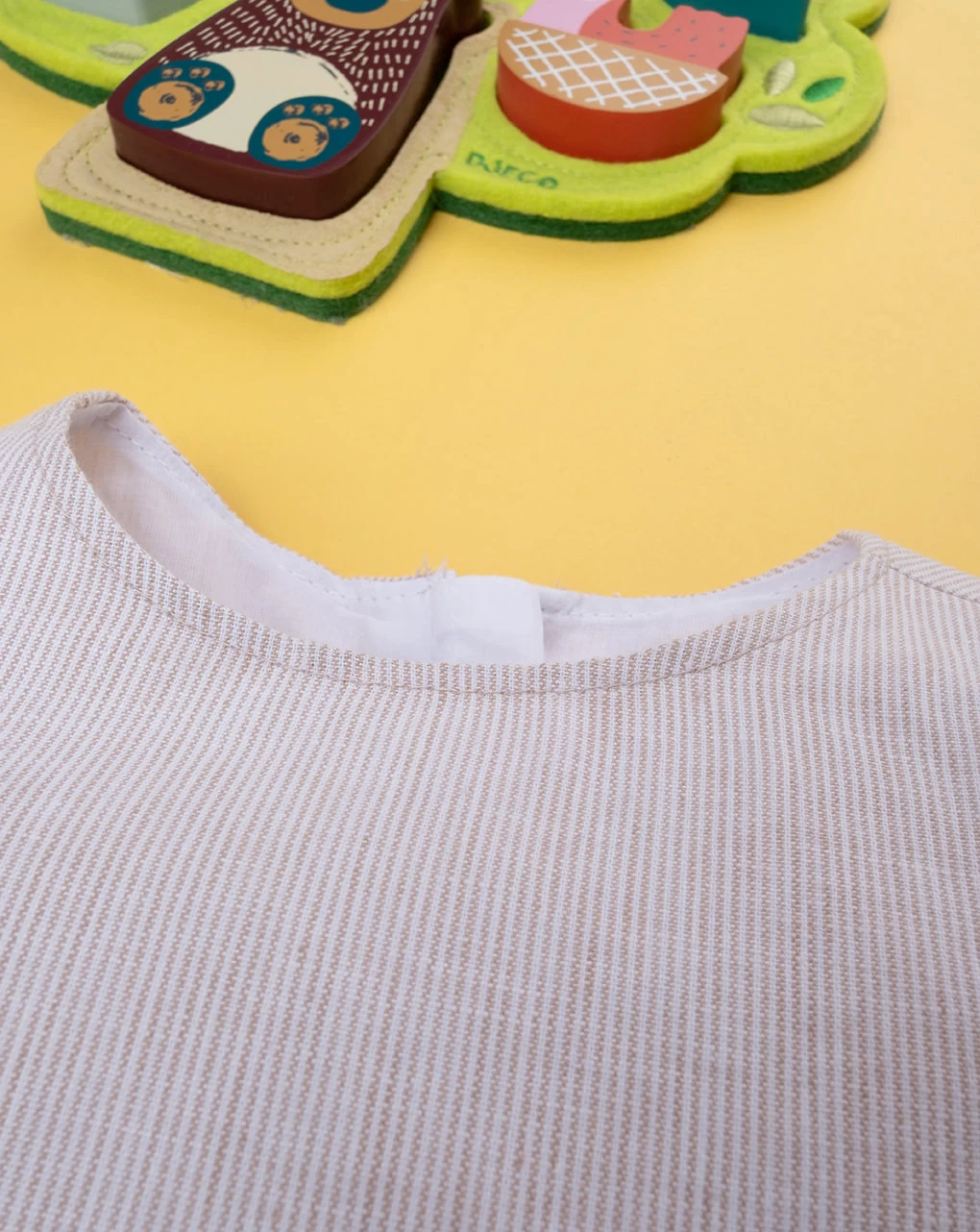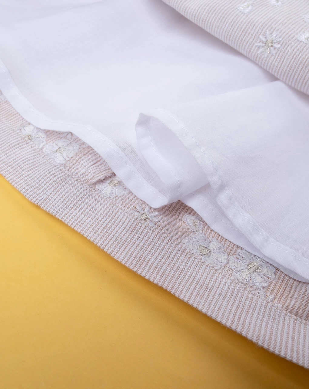 Elegante abito in lino da bambina. Il capo si presenta a maniche corte con gonna svasata e si sviluppa in total beige con raffinato ricamo floreale nella parte inferiore della gonna. La vestizione è morbida e pratica grazie a zip sul retro. L’abito in lino da bambina è adatto per occasioni eleganti. Accessori non in vendita. La confezione contiene solo il capo d’abbigliamento