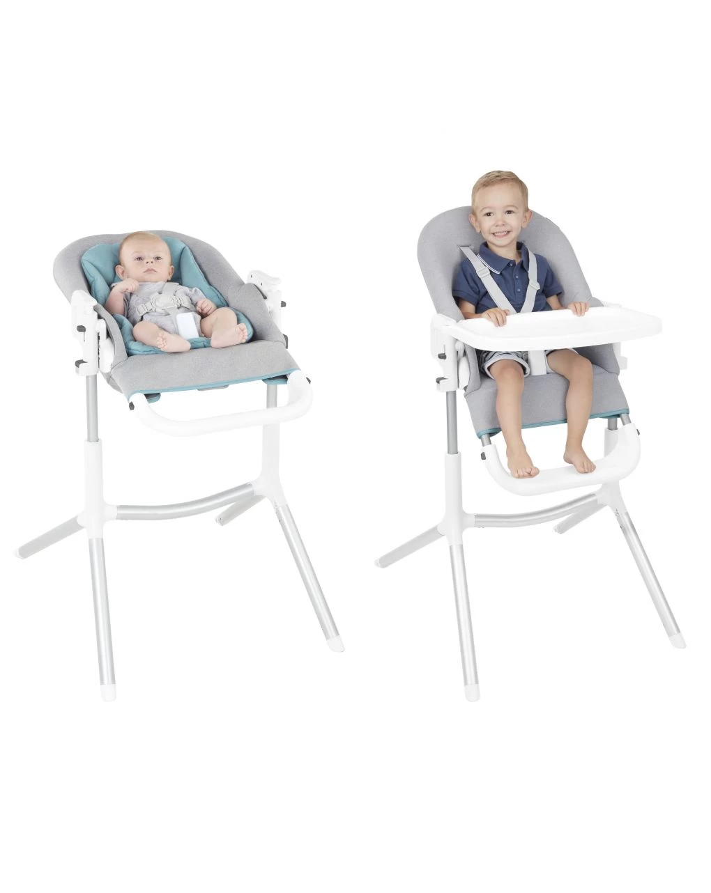 Si regola semplicemente in altezza con i due bottoni (5 posizioni). Accanto al divano, al tavolo del salotto, all’isola centrale, c’è sempre un’altezza che corrisponde alla vostra esigenza. Inoltre, questo seggiolone ha due piccole rotelle sui piedi posteriori, così si sposta facilmente da una stanza all’altra.