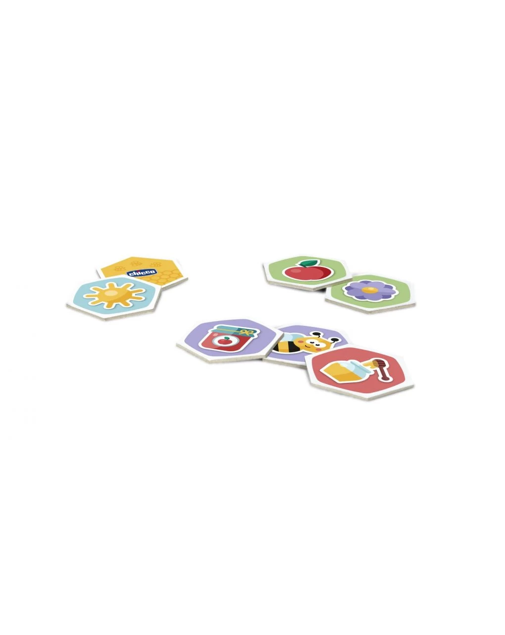Baby Bee, alla Scoperta dell’Alveare di Chicco è un centro attività elettronico che introduce il bambino al mondo delle api grazie alle 12 sequenze da imparare. Le sequenze stimolano l’associazione logica del piccolo e luci e melodie calibrate gli consentono di concentrarsi sull’azione svolta. Il gioco presenta 10 pulsanti interattivi luminosi da premere per scoprire nuovi contenuti e rispondere alle domande e 9 cartoncini esagonali per riprodurre le sequenze.