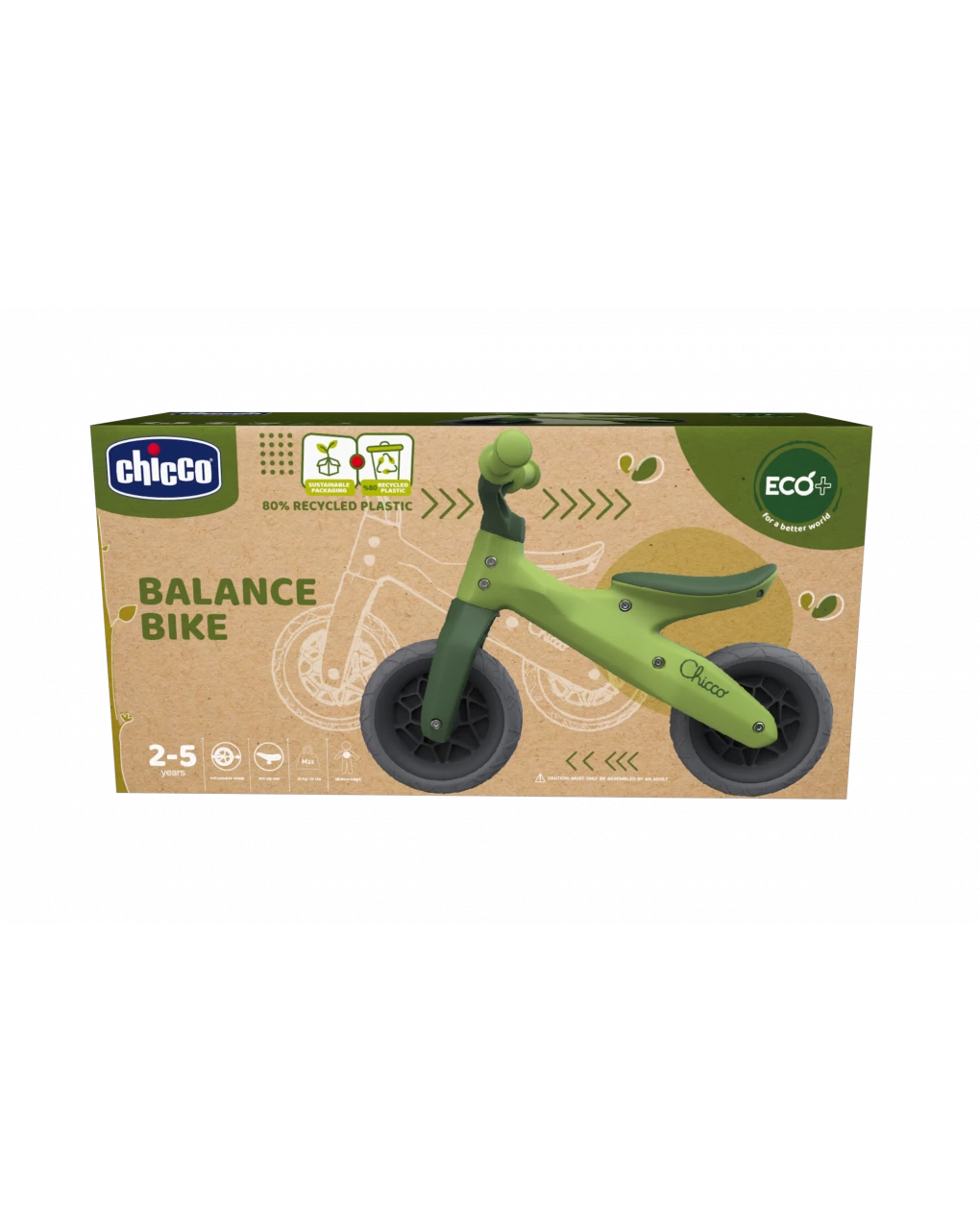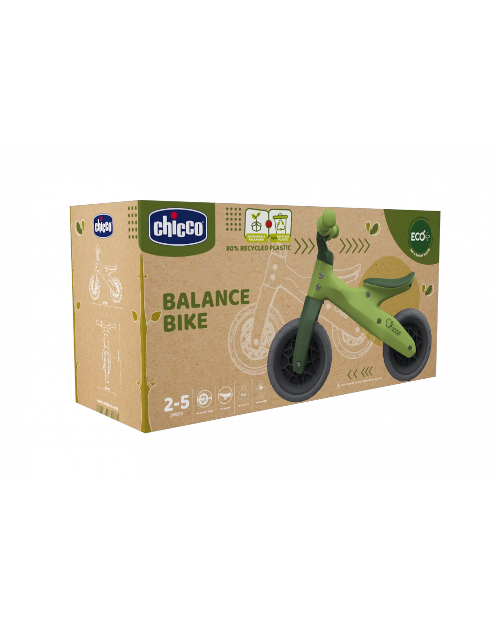 La Balance Bike Eco+ di Chicco è la prima biciletta ideale per far prendere confidenza al tuo bambino e supportarlo nello sviluppo dell’abilità di equilibrio, semplificando così il passaggio successivo a una bicicletta vera e propria. La transizione sarà più graduale e potrà sperimentare l’emozione di trovarsi in sella con sicurezza. La bici è dotata di ruote antiforatura, sellino antiscivolo e manici ergonomici ed è concepita e progettata per essere usata sia all’esterno che all’interno. La Balance Bike Eco+ è Made in Italy: si caratterizza per il design ispirato alla natura e al tech, il telaio e la sella realizzati con l’80% di plastica riciclata proveniente da scarti industriali e il pack riciclabile, realizzato con carta proveniente da foreste gestite responsabilmente.
