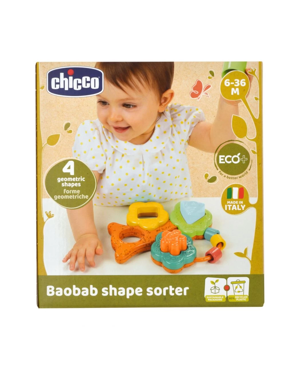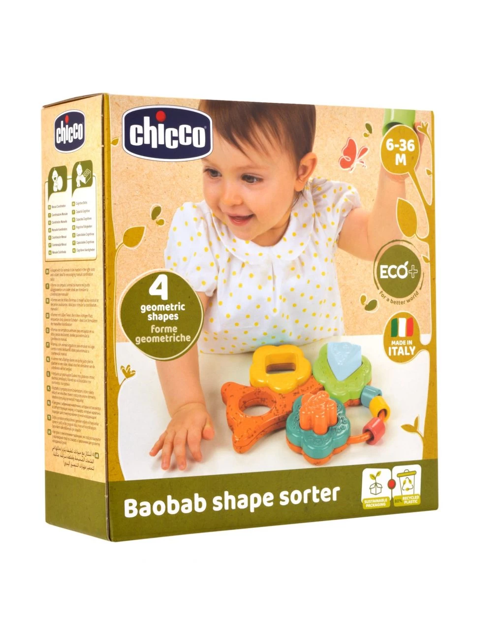 Allena le abilità manuali giocando con Baobab Forme e Incastri Eco+ di Chicco: tocca gli anelli dell’albero e scopri le sue diverse texture, impara a riconoscere e distinguere le incisioni degli animali attraverso il tatto, inserisci le 4 formine nello spazio corretto e impara a riconoscere le forme geometriche. Il gioco è Made in Italy, realizzato con l’80% di plastica riciclata e il packaging è realizzato con carta proveniente da foreste gestite responsabilmente. Come tutti i giocattoli della linea Eco+, rappresenta l’impegno di Chicco verso un mondo più sostenibile.