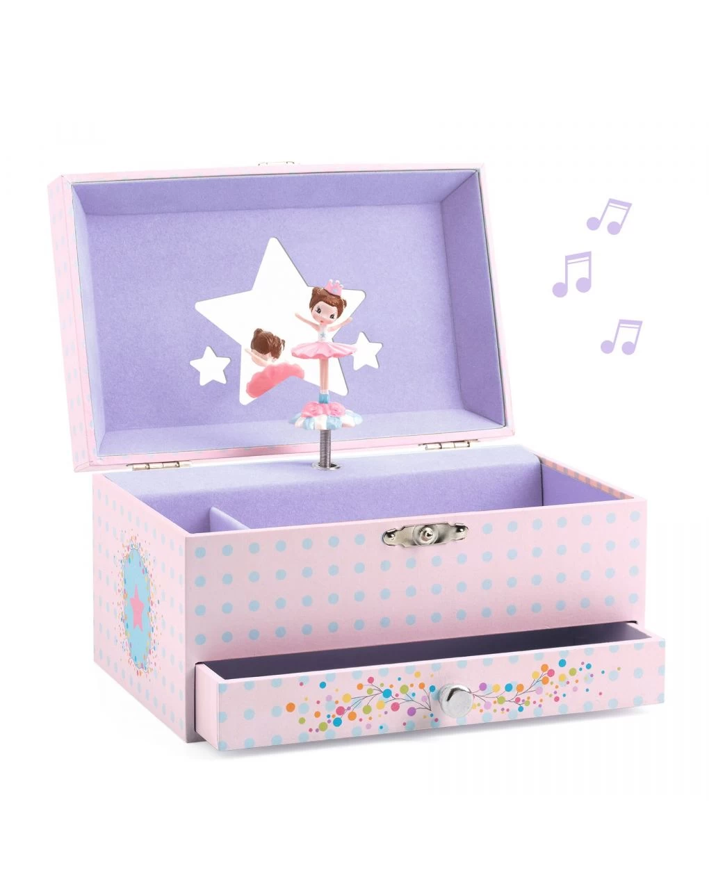 La melodia della ballerina è un carillon con un cassetto per conservare i gioielli e i propri segreti. Girate la chiave, aprite la scatola e sorpresa: una ballerina dai dettagli raffinati gira e si riflette su uno specchio sagomato sulle note di “Invito alla danza” di Carl Maria Von Weber. Età: 4 anni in su