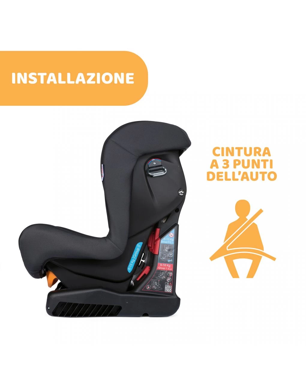 Cosmos è il seggiolino auto Chicco omologato secondo la normativa ECE R44/04 nel Gr. 0+/1 (0-18 kg), per il trasporto dei bambini dalla nascita fino a 18 kg ( 3 anni circa). Dotato di comodo cuscino riduttore specifico per i più piccoli, ampia seduta per i più grandi, imbottitura laterale e 4 posizioni reclinabili per piacevoli sonnellini. Facilissimo da installare Cosmos presenta due configurazioni, a seconda del peso del bambino: fino ai 13kg il seggiolino va fissato contro il senso di marcia utilizzando la cintura a 3 punti dell’auto. A partire dai 9 kg il seggiolino si fissa frontalmente utilizzando la cintura a 3 punti dell’auto. Il bambino viene sempre fissato con le cinturine a 5 punti del seggiolino.