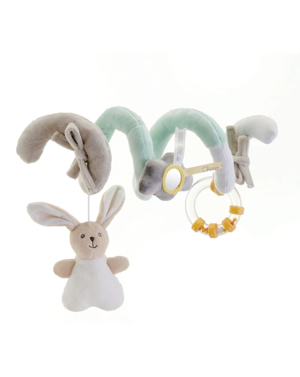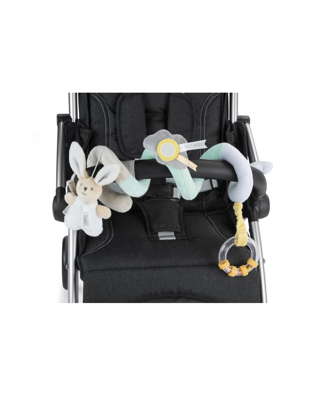 Dona al piccolo momenti di divertimento durante i suoi viaggi in passeggino o carrozina! Grazie alla fune da passeggio in tessuto morbido, il piccolo sarà intrattenuto da 3 attività di gioco: il pupazzetto coniglio, la nuvola con lo specchietto e il trillino ad anello. Grazie ai laccetti laterali, è possibile fissarla in modo saldo al passeggino o alla carrozzina.
