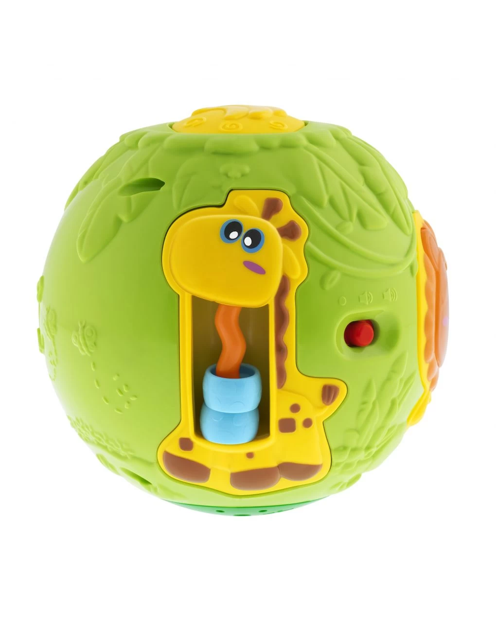 Divertente e colorata, la palla elettronica Pop Up intrattiene il tuo piccolo con gli animali esotici: il leone, la scimmietta, la giraffa e l’elefante aspettano solo lui per giocare! Premendo il leone, si accendono le luci e la scimmietta compare con un dvertente effetto cucù. Tante attività manuali ed elettroniche per lo sviluppo delle abilità manuali.