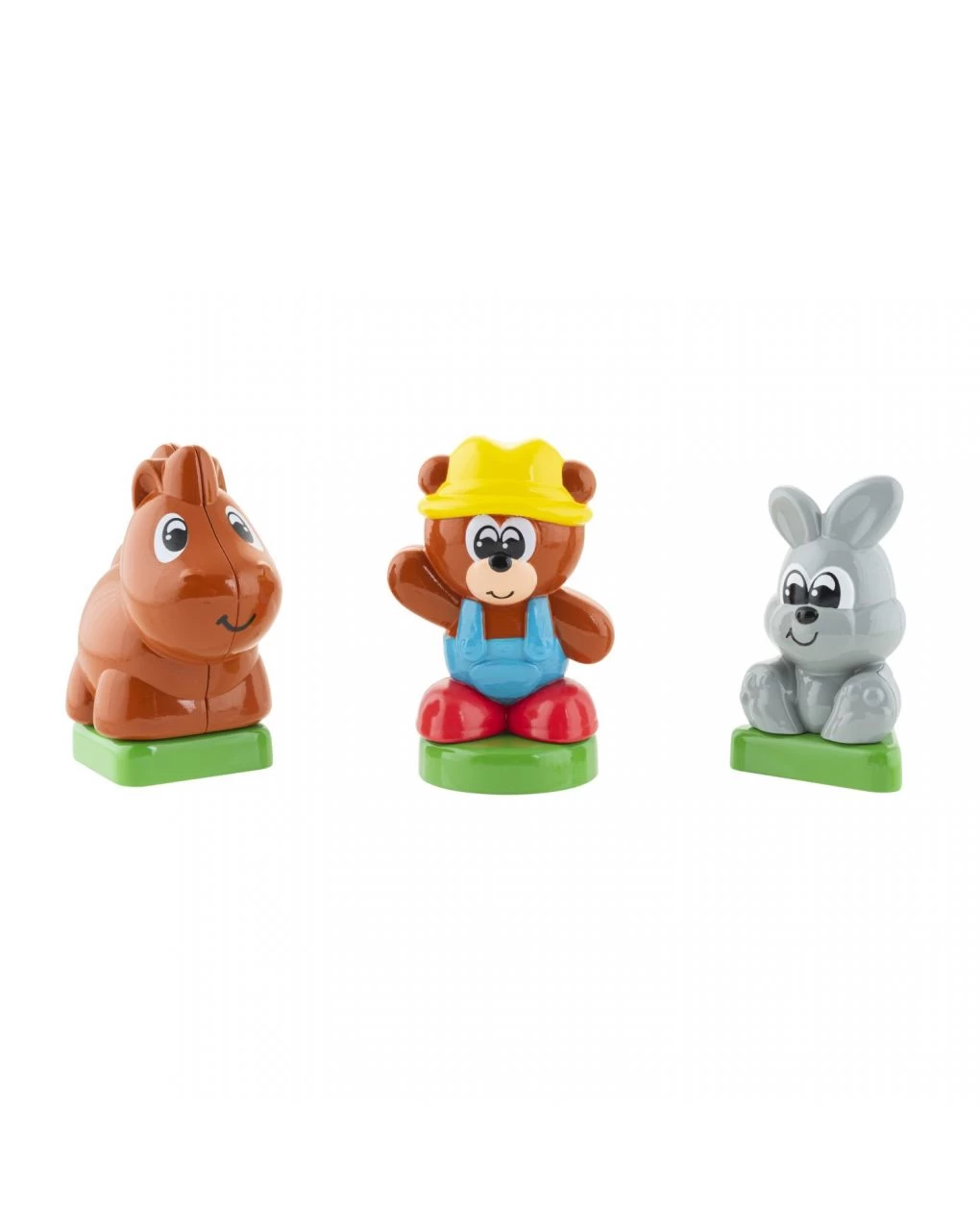Tappeto 40×60 con 6 aree interattive da premere e scoprire, dotato di 6 personaggi con base sagomata: il fattore Teddy, la mucca, la gallina, il cavallo, il coniglietto e l’anatra.