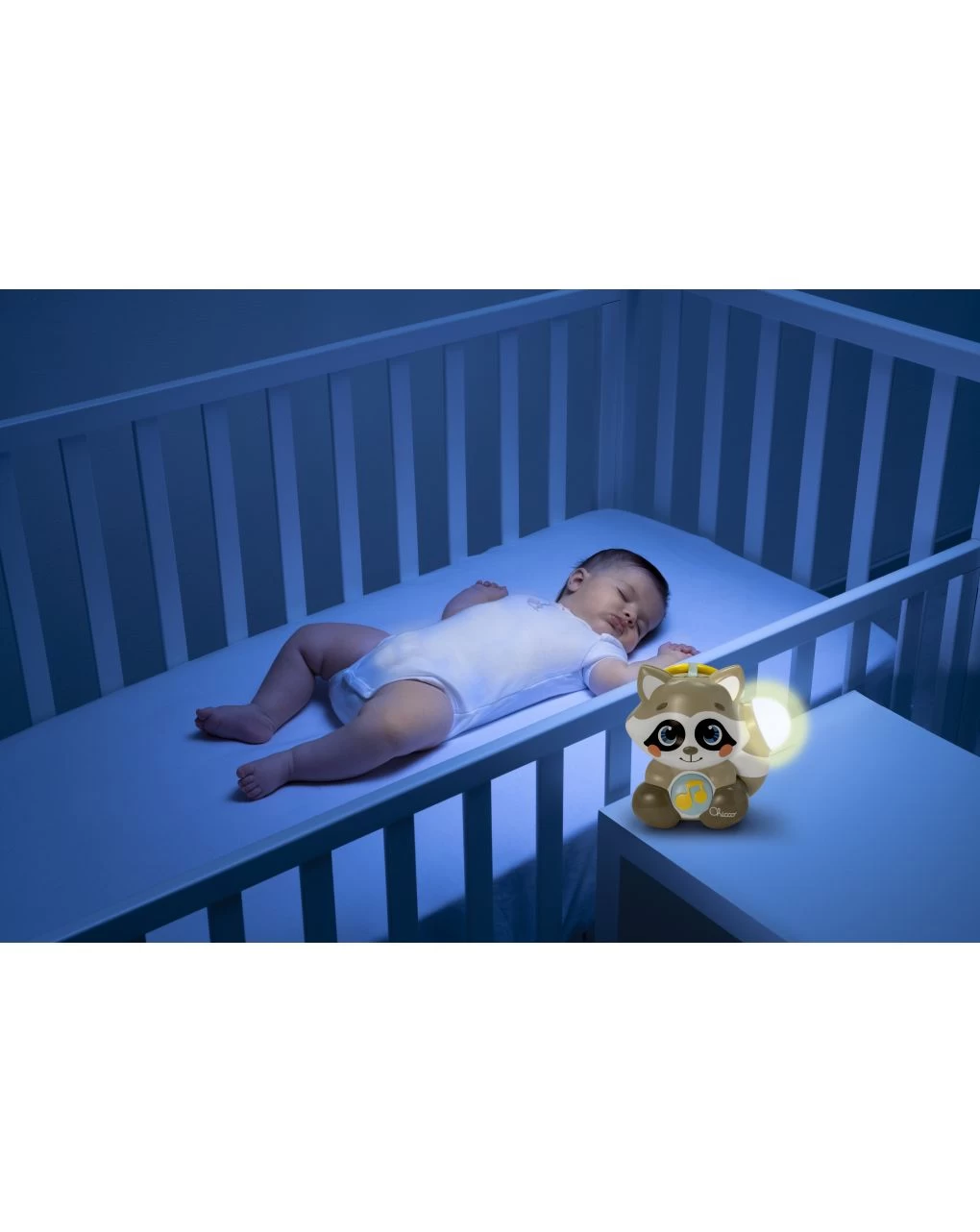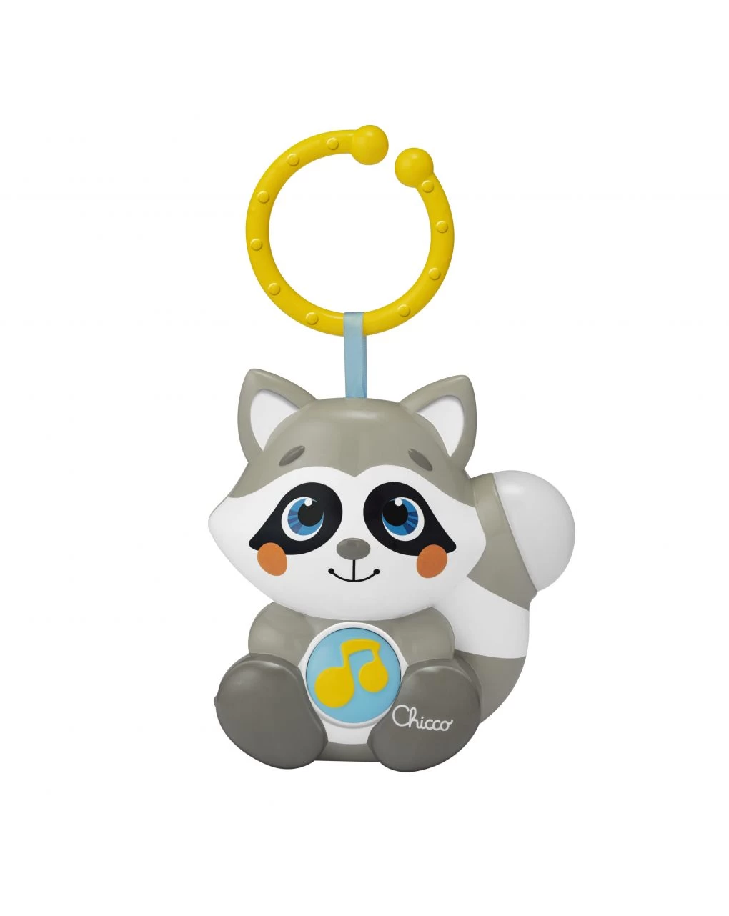 Procione Luci e Suoni di Chicco è il compagno ideale per la nanna del tuo bimbo: grazie al suo pratico gancio può essere fissato a qualsiasi lettino oppure al passeggino, per tenergli compagnia e rilassarlo anche fuori casa. Premendo il pulsante a forma di nota sulla pancia dell’orsetto, potrai selezionare il tipo di riproduzione musicale, classica o new age, e regolare il volume. La coda del procione si illumina con la musica e diffonde una luce bianca con effetto dissolvenza, calda e rassicurante.