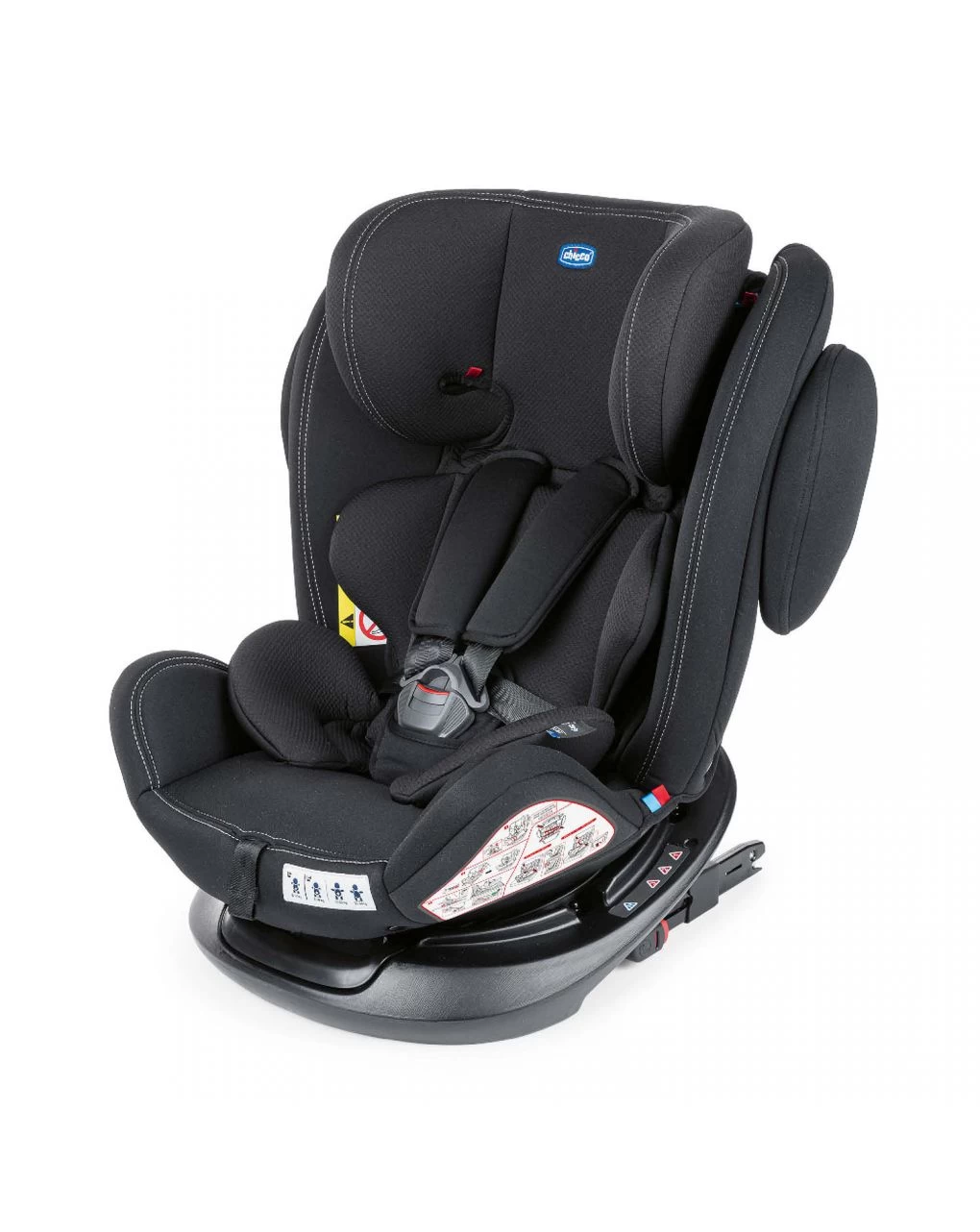 Unico Plus è il seggiolino auto Chicco omologato secondo la normativa ECE R44/04 come Gr. 0+/1/2/3 per il trasporto di bambini dalla nascita fino ai 36 kg (12 anni circa). Unico Plus è la perfetta combinazione tra comfort e sicurezza: il sistema di rotazione a 360° è particolarmente comodo per far sedere facilmente il bambino in senso contrario di marcia e passare da una direzione di marcia all’altra semplicemente con una mano. In senso contrario di marcia è possibile la rotazione anche a 90° “fronte genitori”; quando invece  il seggiolino è posizionato in senso di marcia la presenza del TT non consente di ruotare il seggiolino a 90°.