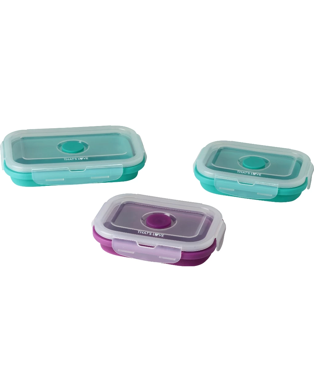 Set di 3 contenitori per alimenti. Occupano pochissimo spazio in dispensa o in borsa.