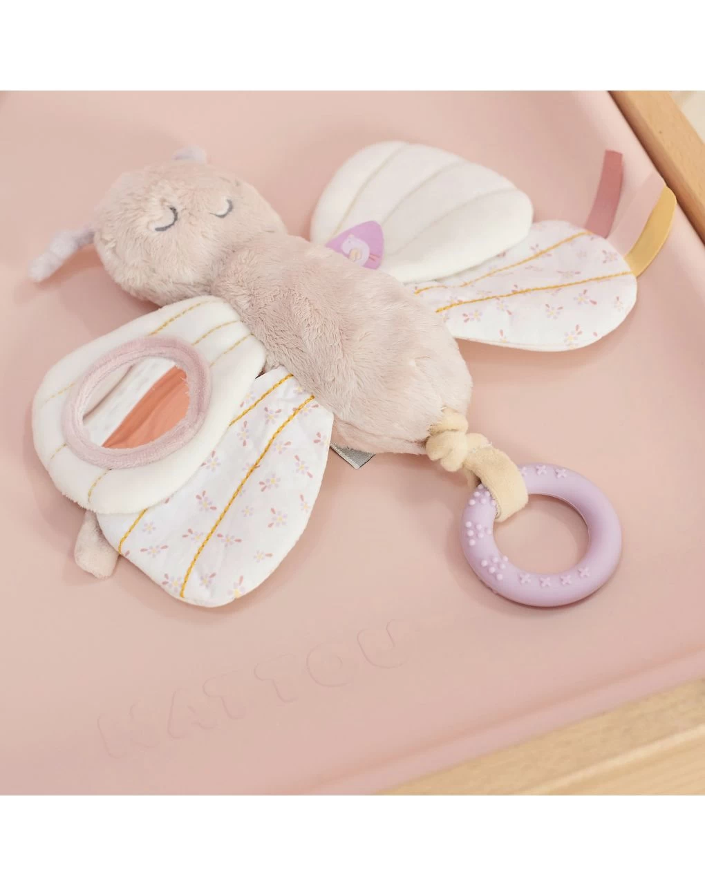 Questa farfalla attività delizia il tuo bambino con attività divertenti tutte in una volta: etichette e animaletti da afferrare, uno specchio e un massaggiagengive in silicone da esplorare. I materiali particolarmente morbidi e le diverse texture favoriscono anche lo sviluppo del senso del tatto e invitano alla scoperta. L’attività coccolone è il compagno di giochi e il compagno ideale per il tuo bambino.