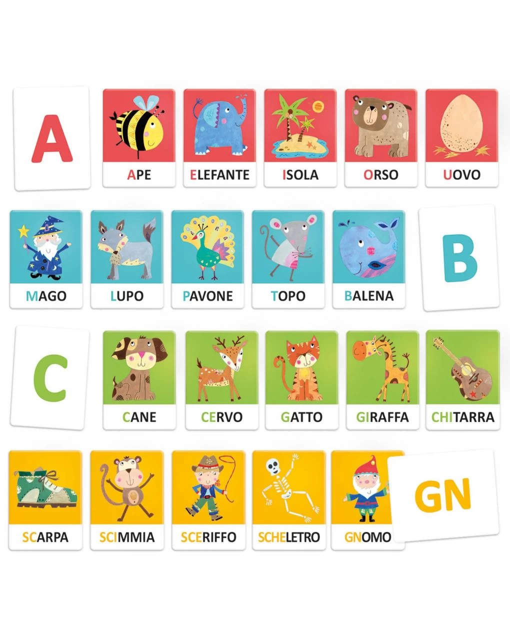 Con le speciali carte tattili i bambini pronunciano le parole, associano i suoni iniziali ai grafemi corrispondenti e tracciano le lettere smerigliate con il dito, imparando a leggere e scrivere in modo efficace.