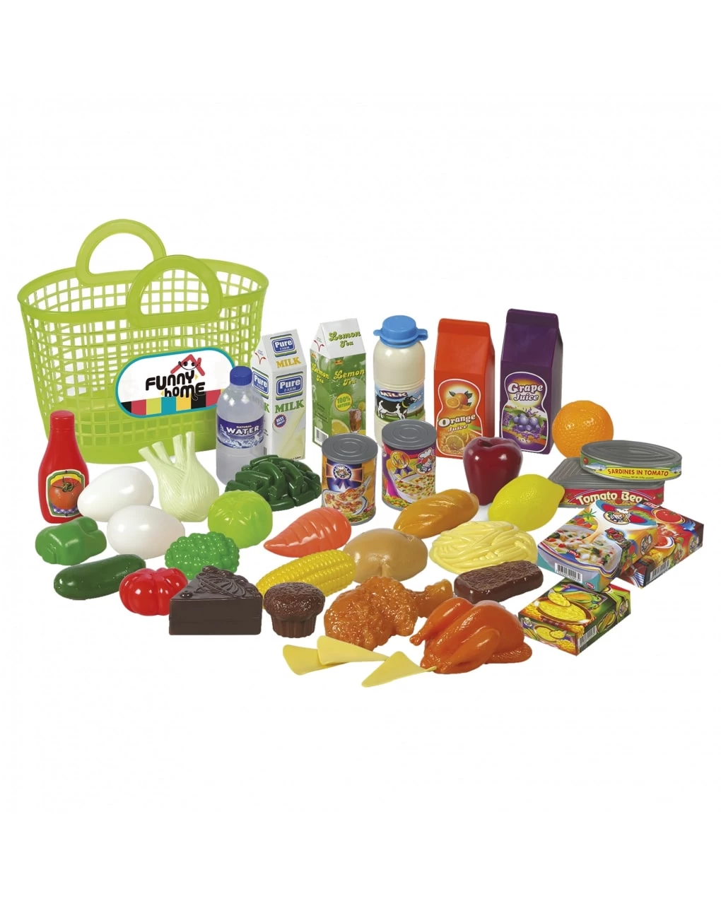 Borsa della spesa con tanti accessori inclusi per giocare a fare la spesa come fanno il tuo papà e la tua mamma! Tanti alimenti gioco inclusi. La quantità degli accessori può variare rispetto al modello (minino 21 accessori).