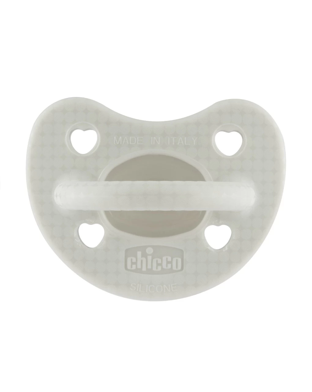 Gommotto realizzato completamente in morbido silicone, supporta la respirazione fisiologica e favorisce il corretto sviluppo della bocca del bambino. Esclusiva PhysioForma del gommotto Chicco: forma anatomico-funzionale esclusiva di tutti i ciucci Chicco, studiata per favorire e stimolare le funzioni vitali della bocca durante la suzione non nutritiva mantenendo il posizionamento fisiologico della lingua, alta sul palato. Extra morbido e delicato sulla pelle, Physioforma® Luxe è il primo ciuccio dotato di un moderno scudo testurizzato e caratterizzato da colori opachi diversi a seconda della misura.