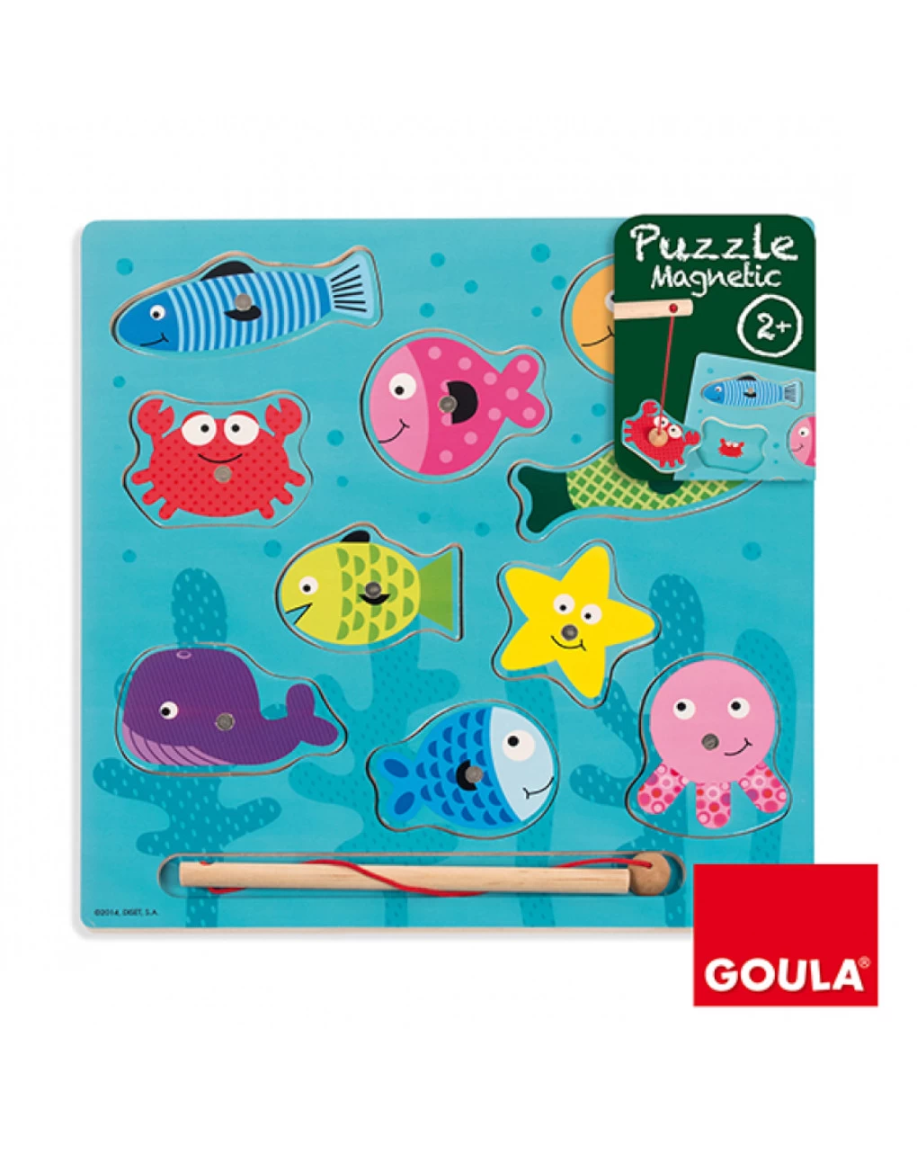 Fantastico puzzle magnetico di legno! I più piccoli si divertiranno un mondo pescando le differenti specie del mondo marino. Devi solo pescare con la calamita una delle 10 specie marine e incastrarle nel loro buco del puzzle. Questo divertente puzzle aiuta i più piccoli a sviluppare la percezione visiva, la motricità fina e la coordinazione occhio/mano. Misure: 28 x 28 cm.