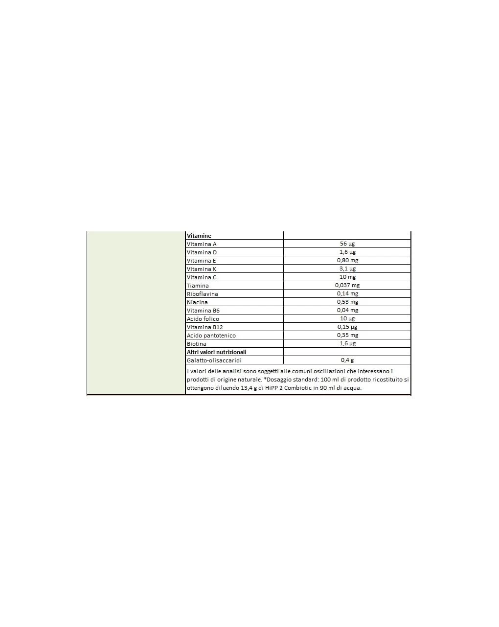 – Fibre alimentari prebiotiche (GOS – Galatto-oligosaccaridi da lattosio), che favoriscono l’equilibrio della flora intestinale