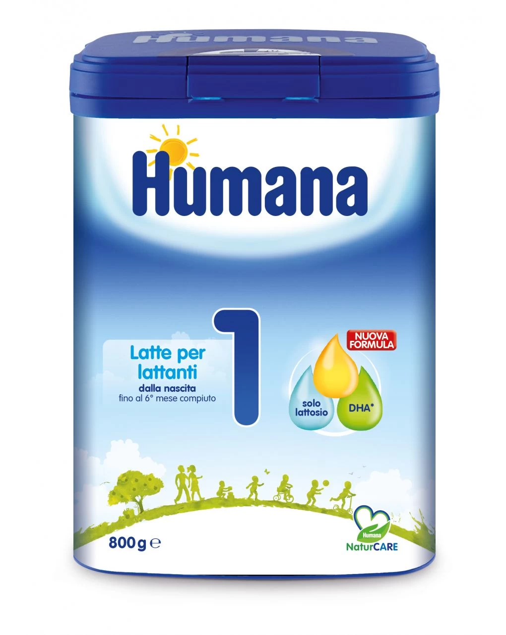 Latte per lattanti. Humana 1 è indicato per la particolare alimentazione del lattante dalla nascita fino al 6° mese compiuto, quando il latte materno manca o non è sufficiente. Caratteristiche nutritive Contiene lattosio come unica fonte di carboidrati e DHA*, un acido grasso essenziale Omega-3. *Contiene DHA come previsto dalla legge per tutte le formule per lattanti.