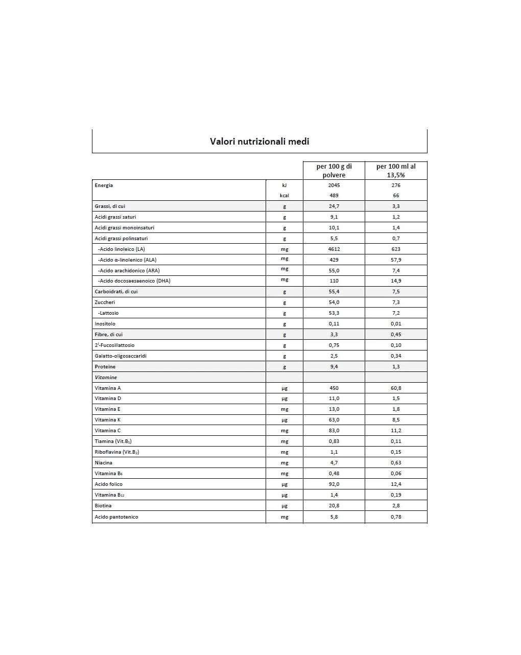 Ricostituzione: 1 misurino raso e non pressato ogni 30 ml di acqua, meglio se minimamente mineralizzata come Humana Amorosa. Humana 1 si ricostituisce al 13,5%. Il misurino raso contiene circa 4,5 g di polvere.