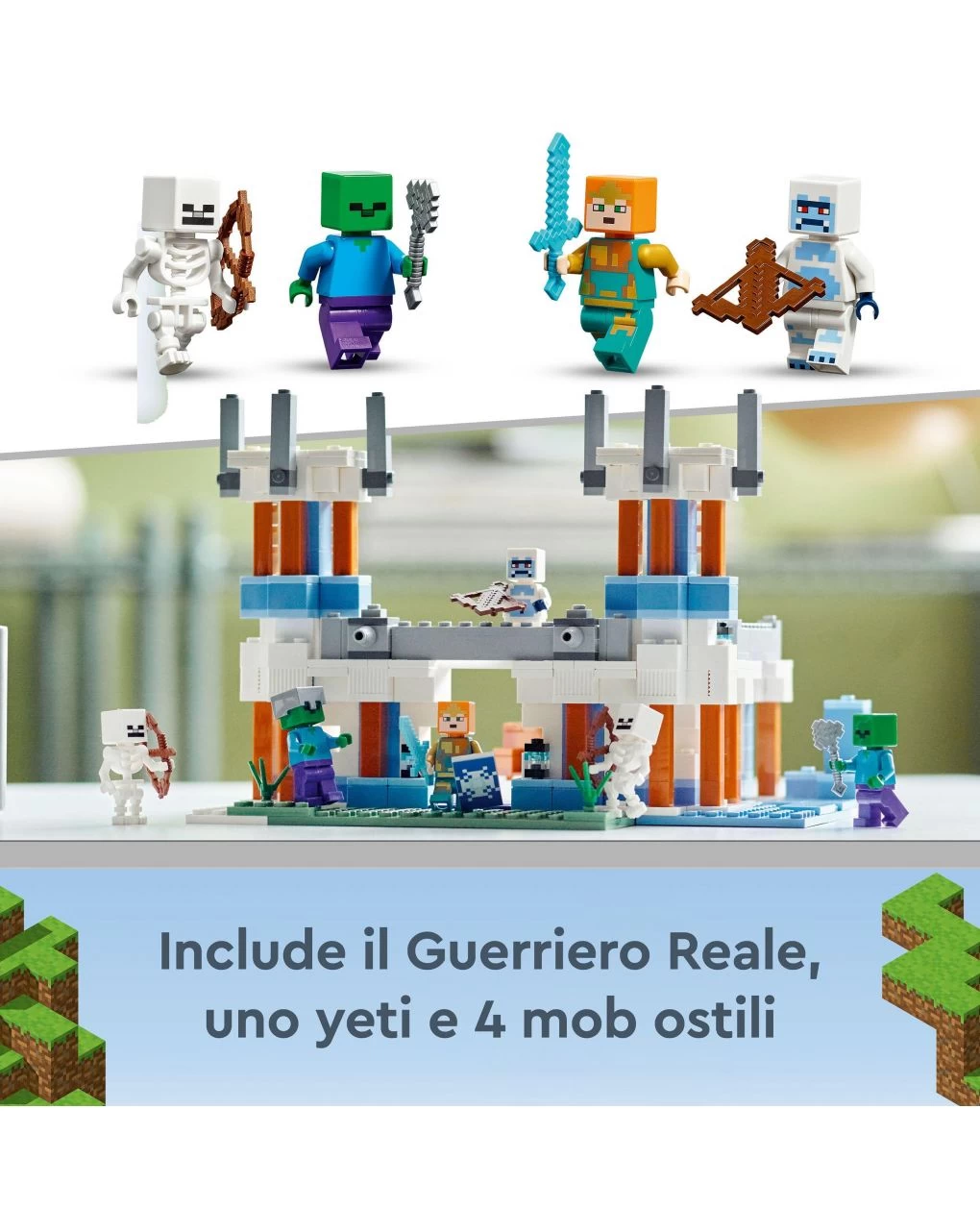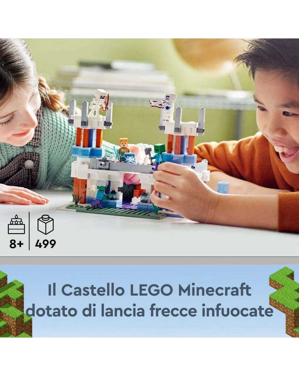Con il magnifico set LEGO Minecraft Il Castello di Ghiaccio (21186), i giocatori da 8 anni in su avranno a loro disposizione tutta la creatività , l’azione e il divertimento offerto dal mondo Minecraft in un solo castello giocattolo riconfigurabile. Un posto unico da esplorare, ricco di dettagli, che può essere trasformato per creare infinite opzioni di gioco.