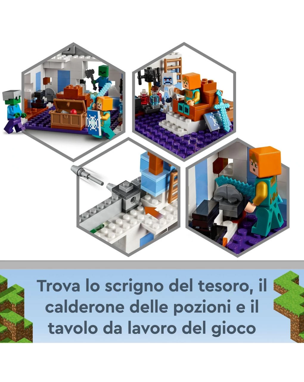 Alla fine di ogni avventura, la struttura del castello giocattolo può essere facilmente riconfigurata per realizzare un nuovo spazio per il divertimento creativo insieme ai personaggi Minecraft. I giochi per bambini e bambine da 8 anni in su LEGO Minecraft portano il mondo dei videogiochi a casa degli appassionati giocatori e sono una fantastica idea regalo per il compleanno o per un’occasione speciale, adatta a tutti gli amanti delle costruzioni LEGO.