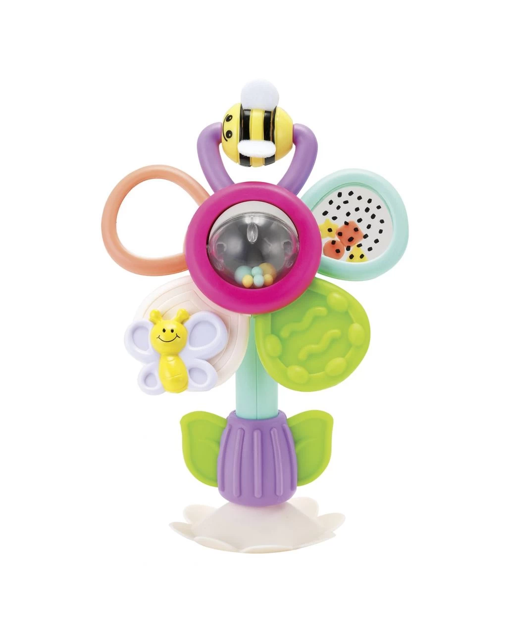 Un fiore colorato da posizionare sul seggiolone per intrattenere il tuo bambino. La base si attacca facilmente su tutte le superfici piatte. Su ogni petalo un’attività diversa: uno specchio, un’ape, una farfalla, un massaggiagengive e al centro un pallina roteante. Questo giocattolo è utile per intrattenere il tuo bambino durante il momento della pappa con attività manuali e rumori divertenti.