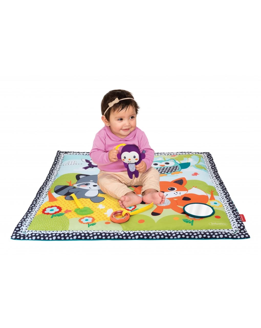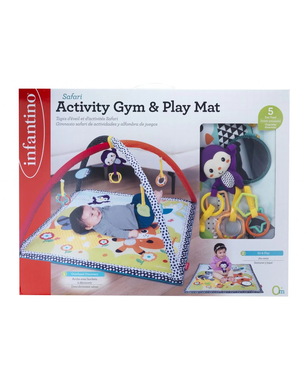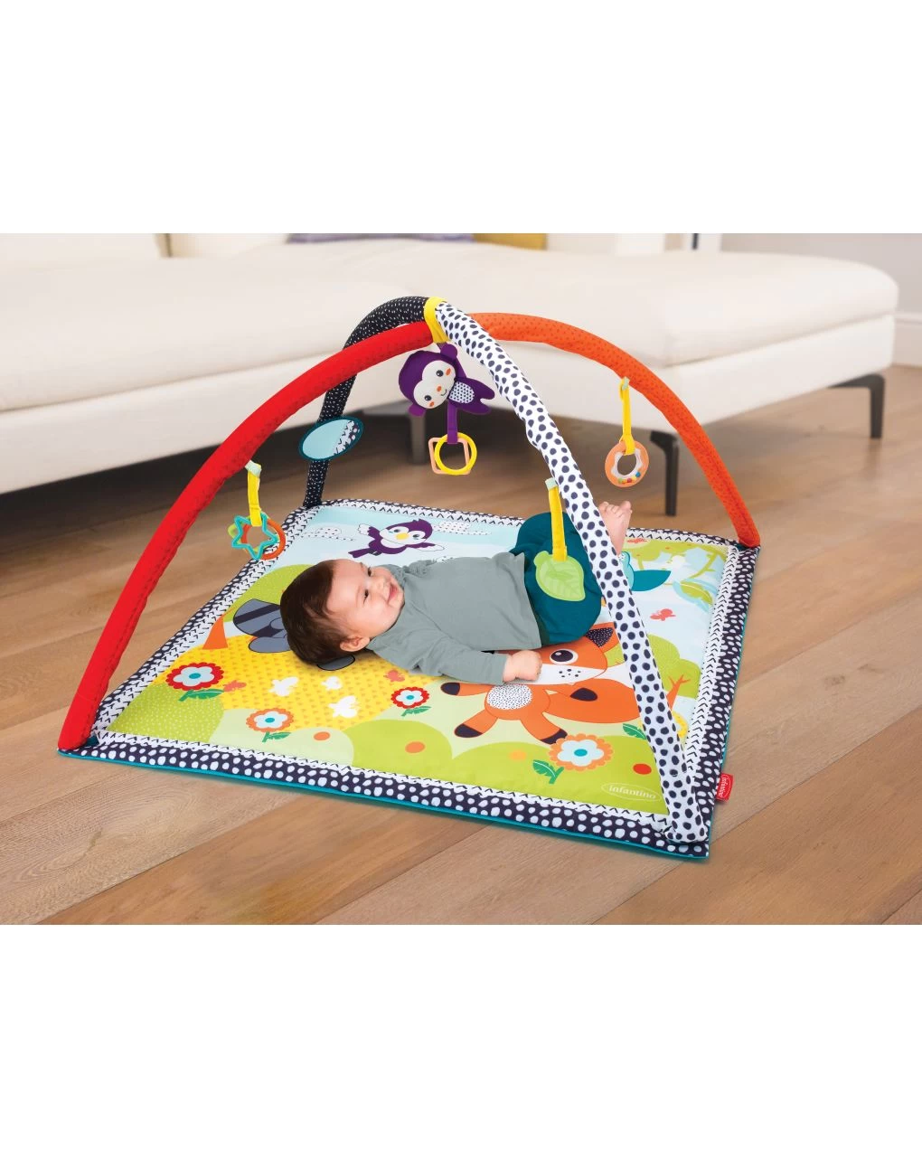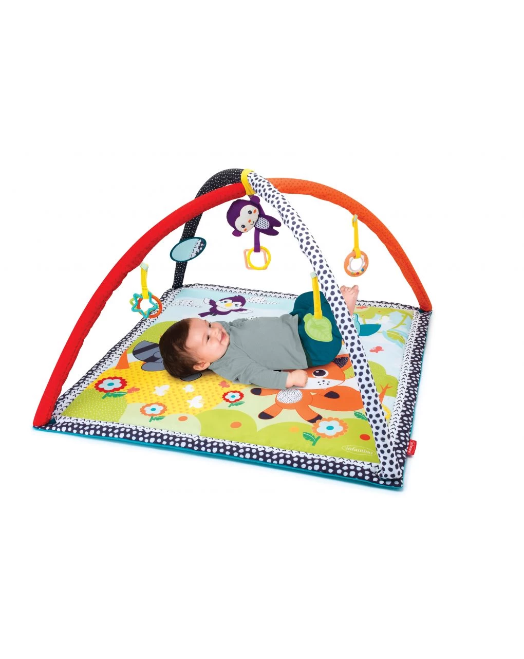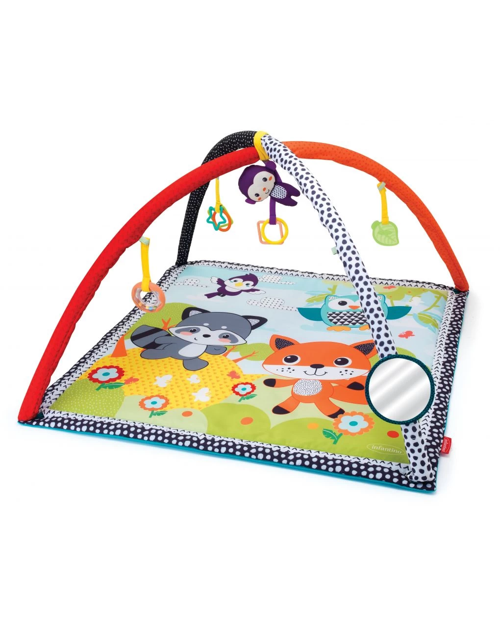 – Gli archi sono rimovibili e la palestrina diventa un ampio e morbido tappeto con un soffice cuscino per lasciare giocare il bambino comodamente seduto.