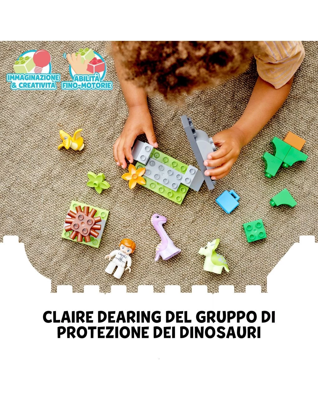 Con questo set, inoltre, il tuo bambino potrà costruire un asilo nell’habitat naturale dei dinosauri con l’aiuto di Claire Dearing, la capogruppo della Protezione dei dinosauri, protagonista dei film Jurassic World. Il set è composto da un Pteranodonte in un nido, un Brachiosauro che usa il suo lungo collo per rosicchiare le foglie di un albero e un Triceratopo giocattolo in una grotta.