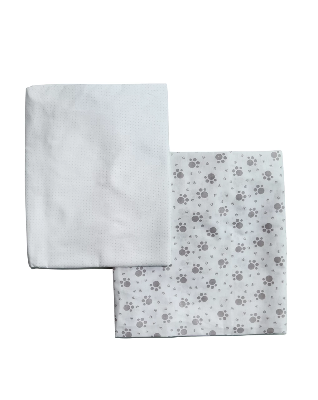 Pratico set composto da due lenzuola di cui uno con angoli. Il completo è realizzato in morbido cotone bianco. Dimensioni: 60×135+20 cm