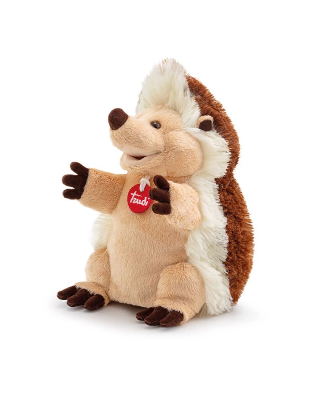 Simpatica marionetta riccio Trudi per piccoli e grandi, indicata fin dalla nascita. Super morbida, la marionetta può rivelarsi anche un tenero peluche, lavabile in lavatrice a 30° o a mano, utilizzando una spugna e sapone neutro.