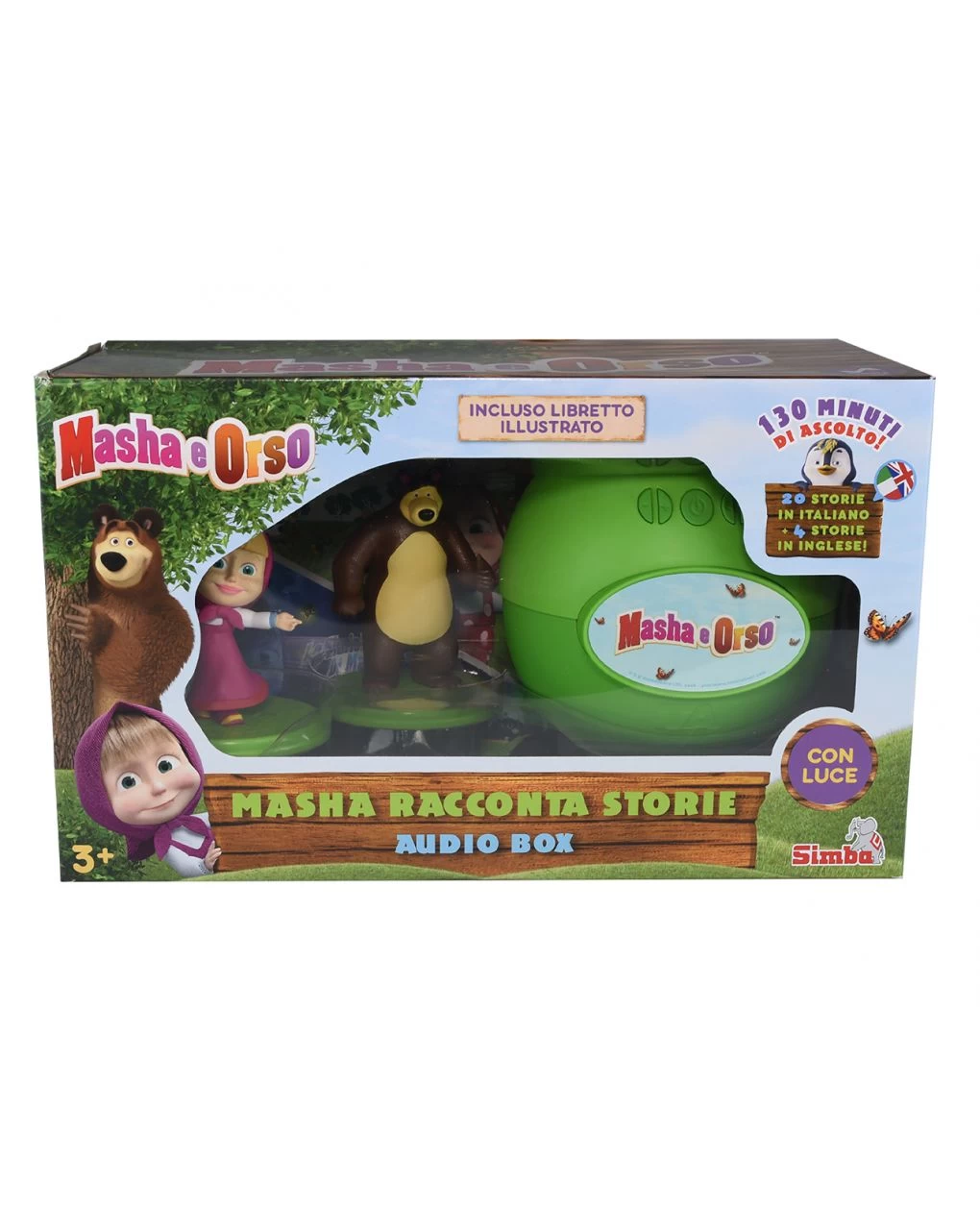 Lasciati appassionare dalle avventure di Masha. Appoggiando il personaggio di Masha o di Orso sullo speaker, si potranno ascoltare più di 20 storie tratte da “I racconti di Masha” e da “Le storie di paura di Masha” oppure 4 racconti in lingua inglese. Sulla cassa è posizionata anche una lucina per poter ascoltare le storie preferite prima della nanna. Nella confezione è incluso anche un libricino con le avventure illustrate.