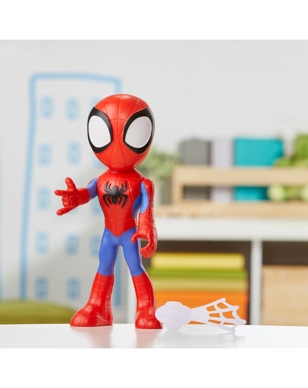 È il momento di Spidey! L’action figure Mega Hero Spidey di Spidey e I Suoi Fantastici Amici è realizzata per coloro che sono dotati di una grande immaginazione. Questa enorme action figure del supereroe alta 22,5 cm e con punti di snodo, è grande, amichevole e pronta per giocare! I bambini e le bambine in età prescolare possono collegare l’accessorio ragnatela incluso al polso dell’action figure e muovere testa e braccia di Spidey per fargli assumere divertenti pose dinamiche e per ricreare le loro scene preferite della serie animata Marvel su Disney+. Cerca le action figure Mega Miles Morales e Mega Ghost-Spider (ciascuna venduta separatamente, secondo disponibilità) per tanto divertimento a tema Spidey! Questi giocattoli di Spidey sono un regalo ideale per bambini e bambine dai 3 anni in su che amano le avventure eroiche del Team Spidey!