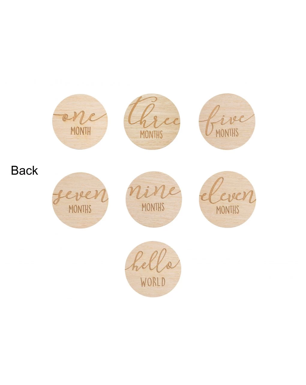 Il prodotto include 7 card in legno a doppia faccia etichettate da “un mese” a “dodici mesi”.