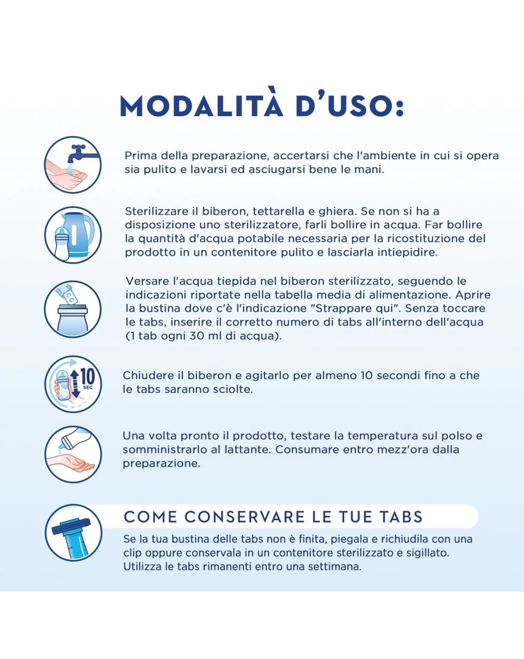 - Più facile da preparare rispetto alla formula in polvere. 1 tab per 30ml di acqua; Facile da preparare. Si dissolve facilmente