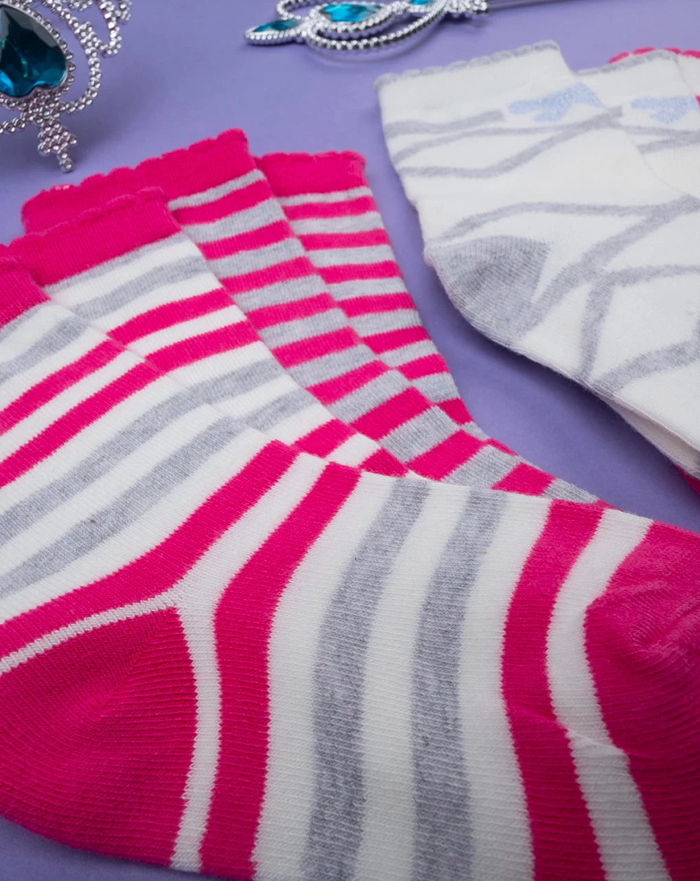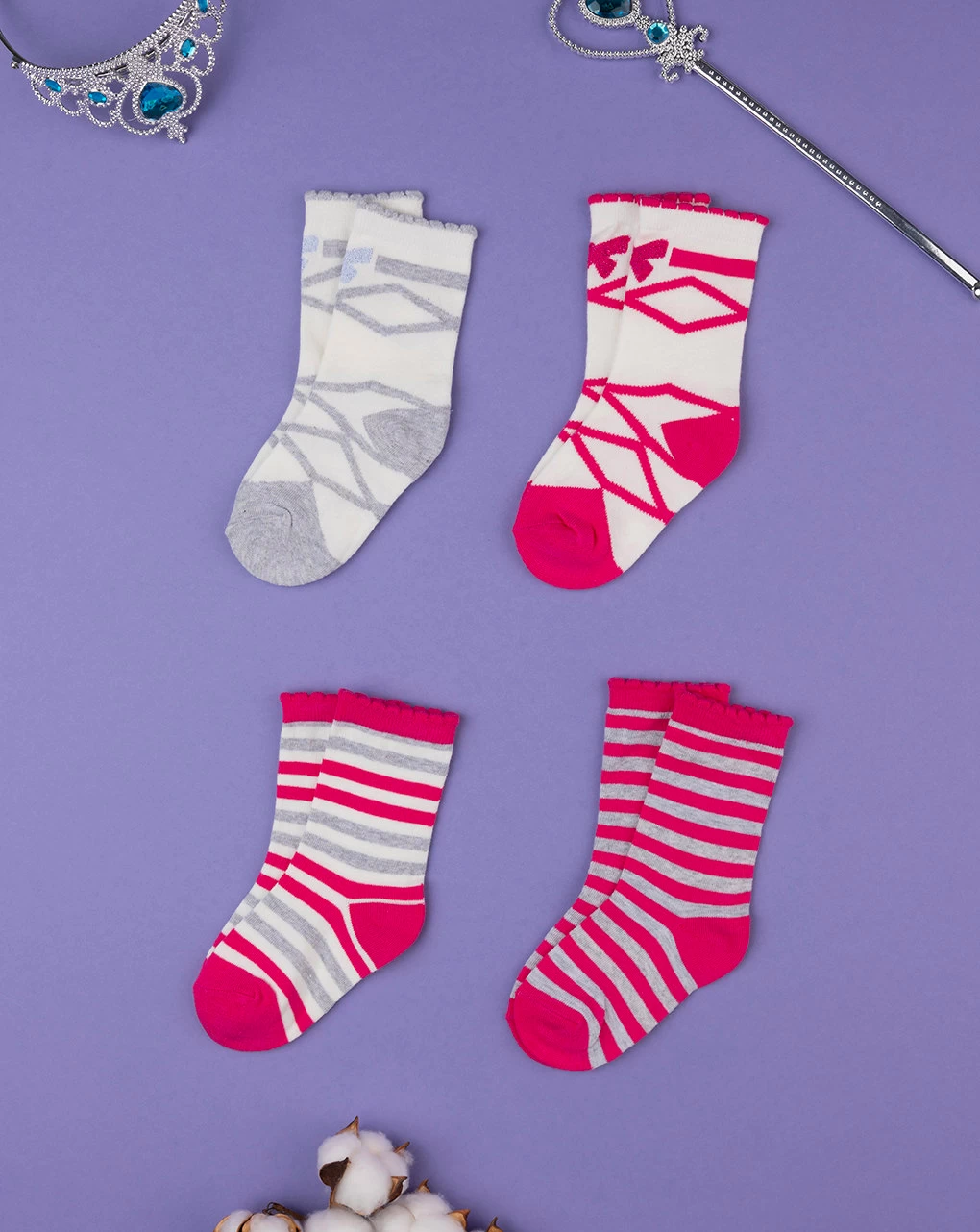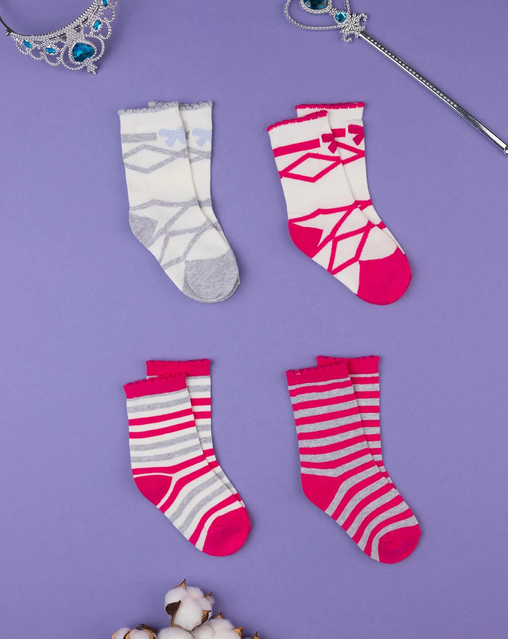 Pack 4 gambaletti bimbo. Le calze si sviluppano nei colori grigio, rosso e panna. Decorate con fantasie a righe a contrasto. Vestibilità pratica e confortevole. Accessori non in vendita. La confezione contiene solo i capi di abbigliamento.