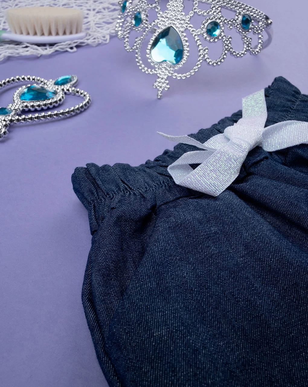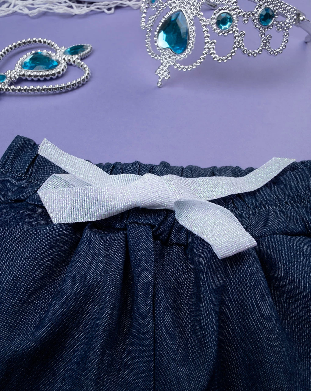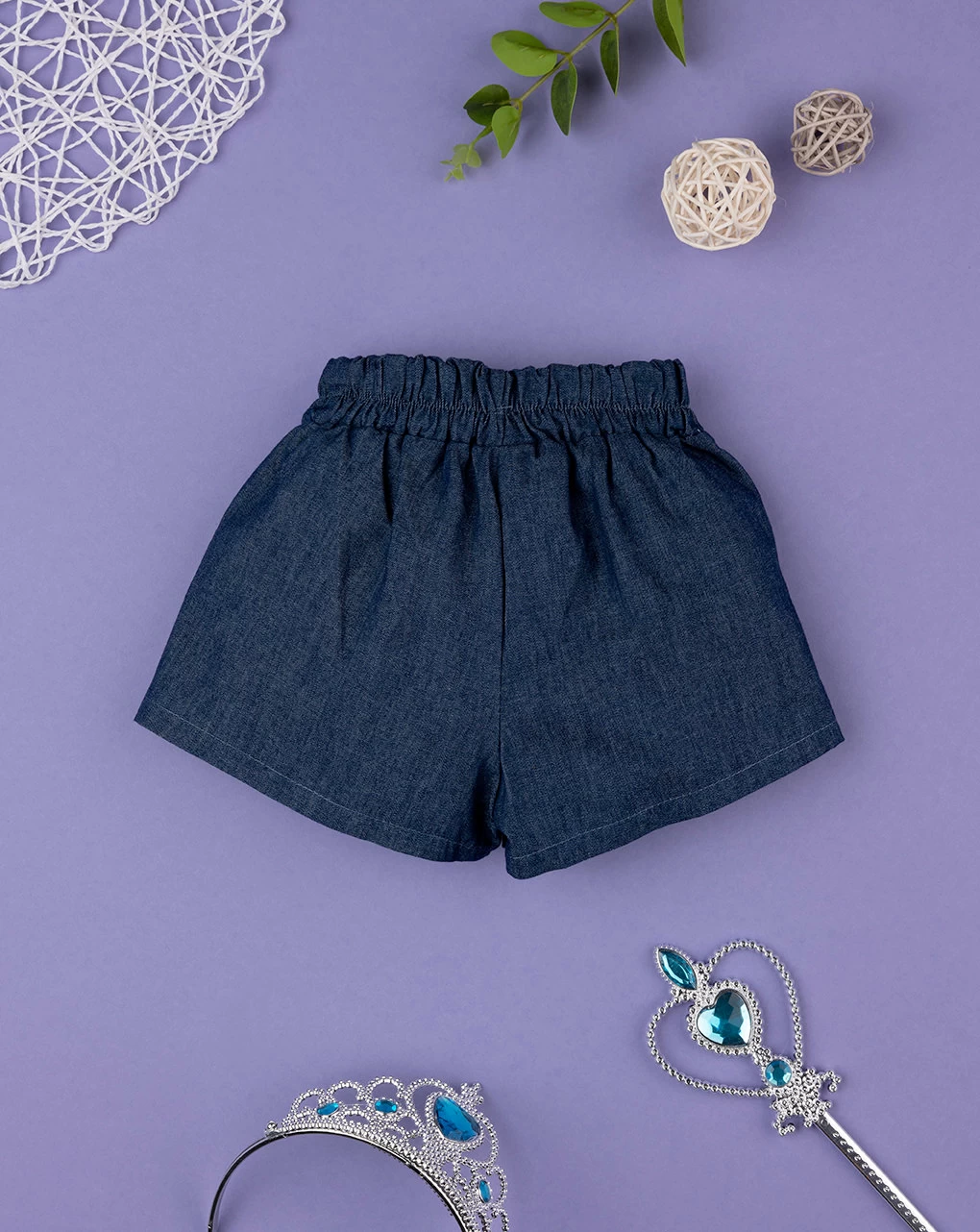 Pantaloni corti da bambina in tencell. Il capo si sviluppa in blu scuro tinta unita e presenta tasche laterali. Modello morbido e confortevole. Vita elasticata con laccio regolatore bianco a contrasto. Accessori non in vendita. La confezione contiene solo il capo di abbigliamento