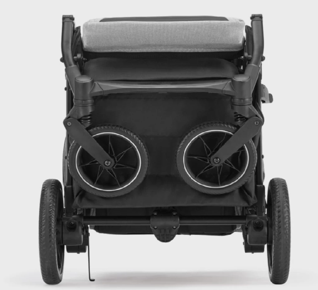 Garantisce passeggiate confortevoli su qualunque tipo di terreno, grazie alle ruote di grandi dimensioni, dotate di cuscinetti a sfera e morbide sospensioni.