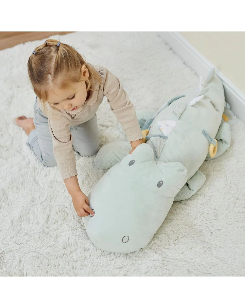 Questo gigante peluche attività delizia il tuo bambino con attività divertenti tutte in una volta: etichette e animaletti da afferrare, uno specchio e un massaggiagengive in silicone da esplorare.