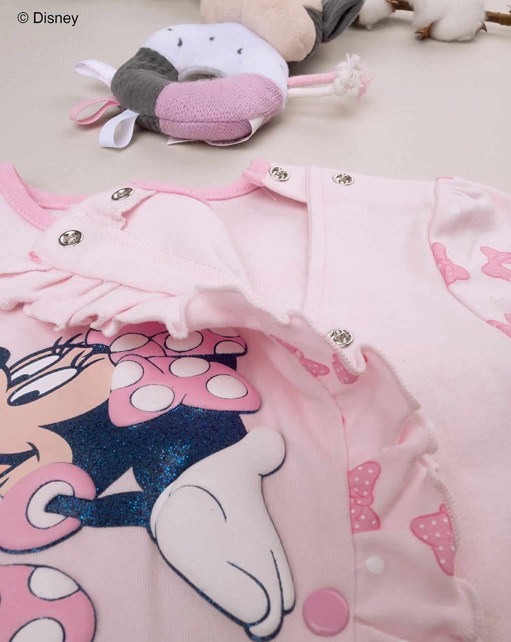 Tenero pigiamone da bambina oekotex. Il capo si presenta in un pezzo unico su sfondo rosa con stampa “Minnie” e dettagli in tinta coordinata. La vestibilità è morbida e pratica grazie a bottoni automatici in linea trasversale sul fronte con frill abbinato. Il capo è in cotone oeko – tex, testato per sostanze nocive garantisce alta sicurezza. Accessori non in vendita. La confezione contiene solo il capo d’abbigliamento