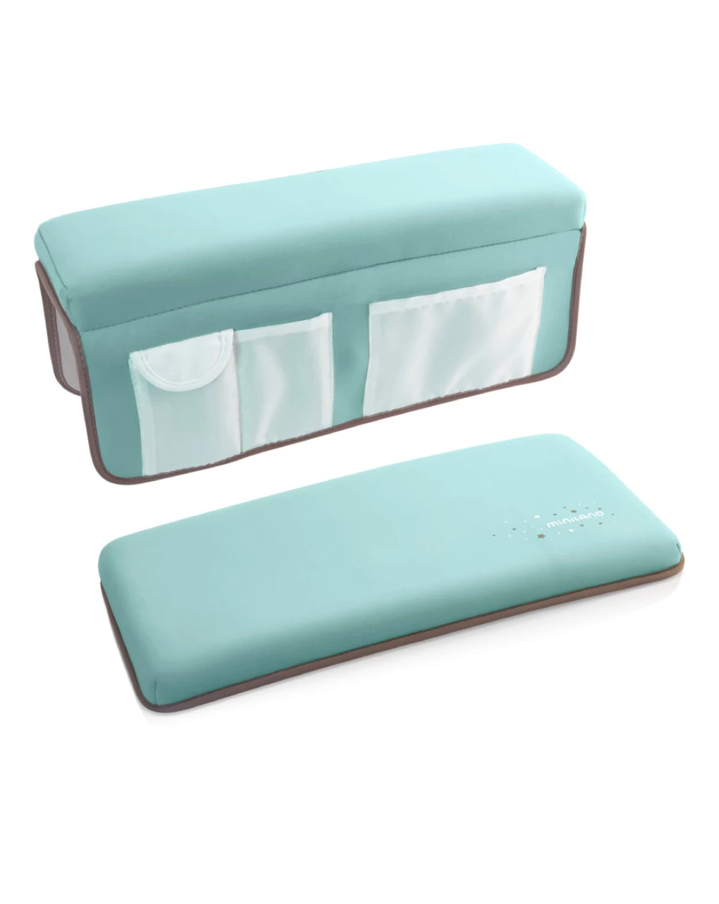Comodo poggia ginocchia e poggia gomiti per la vasca da bagno di Miniland. Momenti condivisi Pratico set poggia-ginocchia e poggia-gomiti con imbottitura di schiuma e rivestimento antiscivolo, per rendere più comodo il momento del bagnetto e del gioco con i più piccoli. Sicuro e facile da fissare Incorpora ventose nel poggia-gomiti per garantire un fissaggio ottimale ed evitare che scivoli sul bordo della vasca. Inoltre, grazie al rivestimento antiscivolo, i genitori avranno la stabilità di cui necessitano nel momento in cui fanno il bagnetto ai loro piccoli. Tutto il necessario a portata di mano Include tasche e scomparti laterali per riporre tutto il necessario per l’ora del bagnetto: flaconi di shampoo, gel e accessori di altro tipo, come piccoli giocattoli. Con finitura impermeabile Entrambi i complemento sono fabbricati in neoprene e possiedono una texture impermeabile, resistente alle infiltrazioni di acqua. Inoltre, grazie alla natura del materiale, entrambi i pezzi si asciugano rapidamente dopo il loro uso. Facile e comodo da riporre Easy-Bathing è facile e comodo da riporre grazie al suo sistema di piegatura. Inoltre, la sua maniglia permette di trasportarlo e appenderlo ovunque per facilitarne l’asciugatura e perchè non occupi spazio di troppo nel bagno. Perfetto per tutti bagni Grazie al proprio design e ad un assortimento di eleganti colori, questo dispositivo poggia gomiti e ginocchia è ideale per l’utilizzo in qualsiasi bagno.