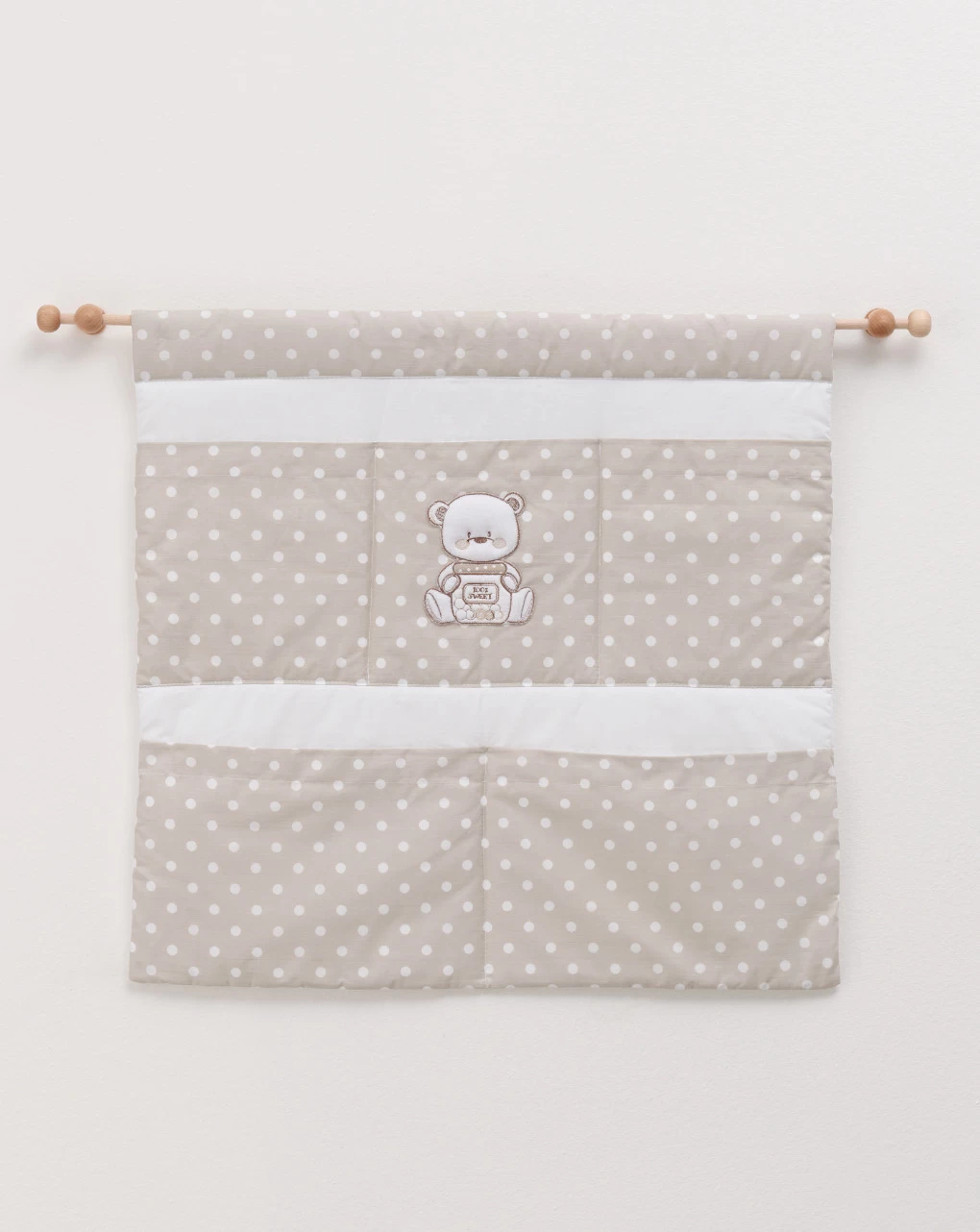 Poster murale con ampie tasche comprensivo di barra per fissaggio al muro.