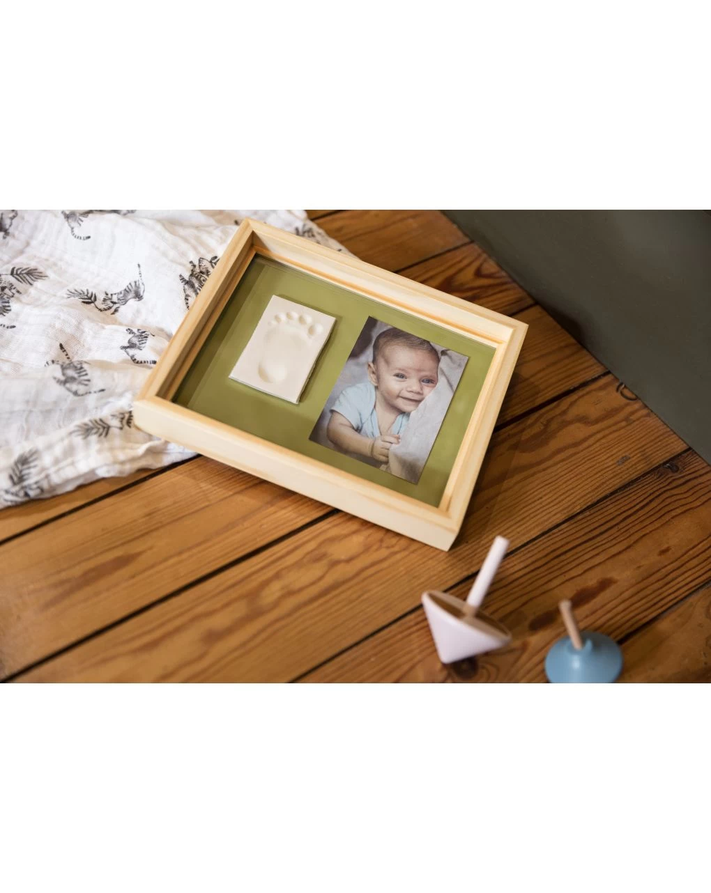 Una gamma di prodotti con un approccio sostenibile per essere ancora più vicino alla natura senza danneggiarla. Elegante portafoto con spazio per una foto e un calco (della manina o del piedino del bebè), che puoi creare insieme al tuo piccolo per avere un ricordo unico e indimenticabile dei primi mesi. Argilla organica e sfondo reversibile inclusi nella confezione.