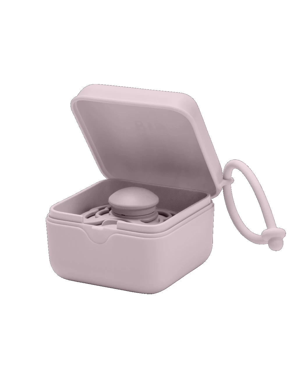 Scatola Portaciuccio con inserto per ciuccio e una stringa di silicone in tinta.