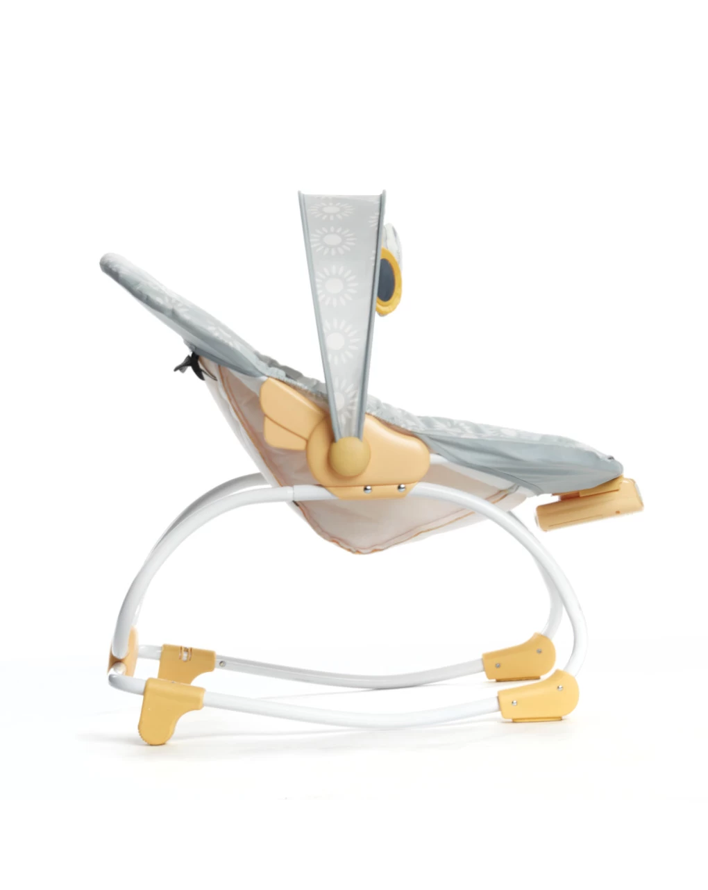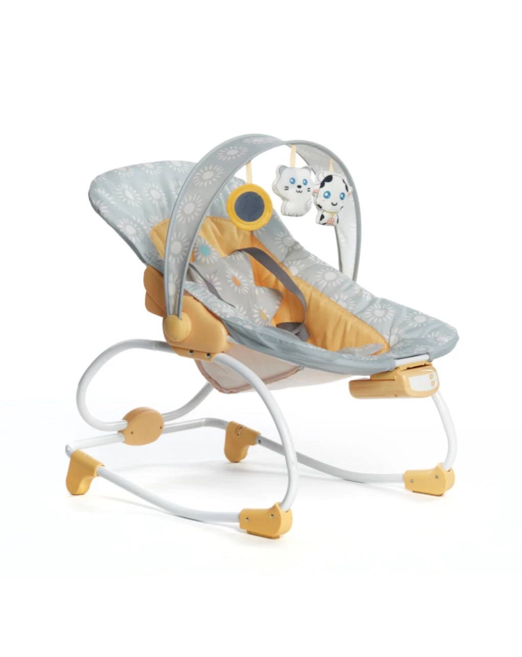 Lo schienale reclinabile, la fodera in morbido tessuto e al soffice riduttore sagomato, garantiscono la massina comodità. La funzione dondolo e la leggera vibrazione aiuteranno il bambino ad addormentarsi.