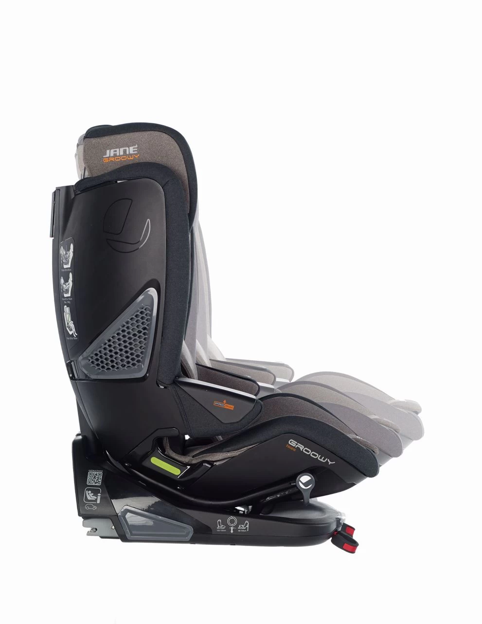 Arriva un nuovo concetto di seggiolino auto. Groowy è il primo seggiolino auto iSize evolutivo che accompagnerà il vostro bambino durante tutta la sua infanzia. Si adatta alla sua crescita e alle necessità di ogni tappa garantendo tutti gli standard di sicurezza. Groowy rappresenta un punto di svolta in quanto a innovazione, comfort e facilità d’uso. Ideale per neonati e bambini prematuri. Comfort e sicurezza per la famiglia. Groowy incorpora un ovetto iSize appositamente progettato per neonati fino a 65 cm di altezza. Grazie al suo angolo di riposo, il bambino è praticamente disteso e i rischi di desaturazione di ossigeno, bradicardia e ipossia sono ridotti al minimo. Massima sicurezza nel senso contrario alla marcia fino a 105 cm di altezza. Il bambino viaggia in modo più sicuro nel senso contrario alla marcia poiché, in caso d’incidente, le forze dell’impatto vengono assorbite dallo schienale del seggiolino, evitando l’esposizione della testa e del collo. Da 60 a 105 cm si utilizza senza l’ovetto Nest, con la possibilità di utilizzarlo con un riduttore reversibile incluso, per una migliore regolazione. Il seggiolino auto Groowy è stato progettato anche per l’ultima tappa della crescita del bambino, da 100 a 150 cm di altezza. Grazie al poggiatesta regolabile in 4 posizioni, garantisce il massimo comfort in ogni momento. Abbinate il vostro Jané Groowy a uno qualsiasi dei nostri passeggini, in modo che spostarvi con il vostro bambino sia estremamente facile, sia in strada che in macchina. L’ovetto Nest è compatibile con tutti i passeggini Jané. Installazione da 40 a 105 cm di altezza in senso contrario alla marcia con ancoraggi Isofix e piede di supporto. Da 105 a 150 cm, è installato nel senso di marcia, con ancoraggi Isofix e la cintura a 3 punti dell’auto, il piede di supporto viene inserito nella struttura del seggiolino, rafforzandone la struttura.