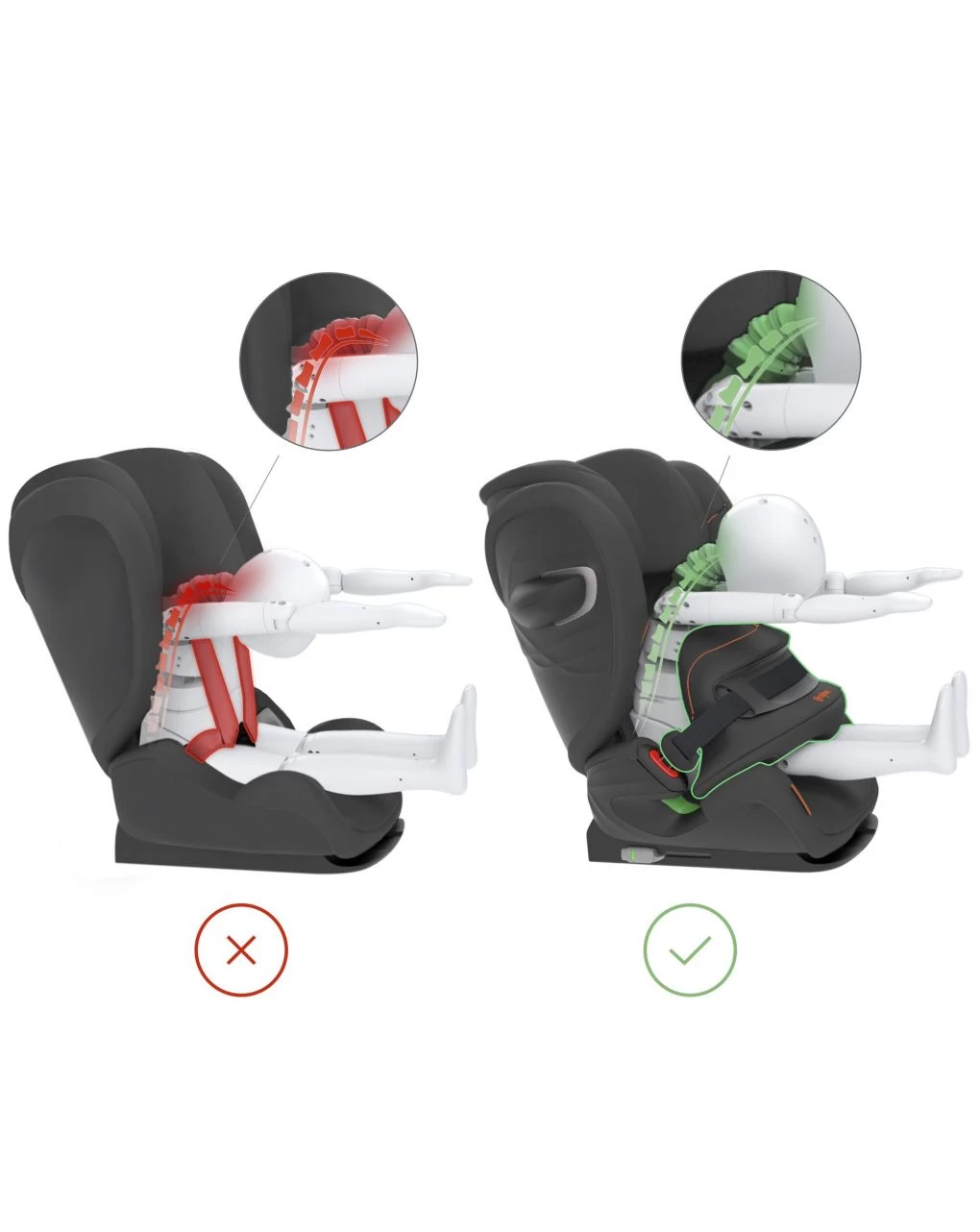 Il tuo bambino è protetto da un cuscino di protezione finché non raggiunge i 21 Kg. A questo punto il cuscino viene rimosso e il seggiolino viene installato con la cintura di sicurezza del veicolo, fornendo una protezione affidabile fino ai 150 cm (circa 12 anni). L’avanzato cuscino di protezione aiuta a ridurre il rischio di lesioni al collo in caso di collisione frontale, con prestazioni superiori rispetto a un sistema di ritenuta con cinturine. In uno scontro frontale il cuscino di protezione agisce in modo simile a un airbag, con la forza d’urto distribuita su tutta la sua ampia superficie. Questo riduce la tensione sul collo e protegge la testa del bambino. ISOFIX e Top Tether assicurano che il seggiolino auto possa essere installato facilmente e in sicurezza. Gli ISOFIX aiutano ad installare correttamente il seggiolino mentre il Top Tether fornisce un ancoraggio aggiuntivo per una maggiore sicurezza e stabilità.