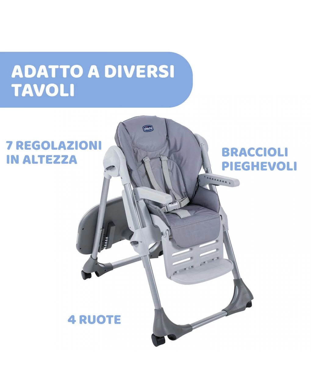 Finalmente con il seggiolone Polly Easy di Chicco le prime pappe saranno più facili e piacevoli per te e il tuo bambino. Tanto comfort in un unico prodotto.