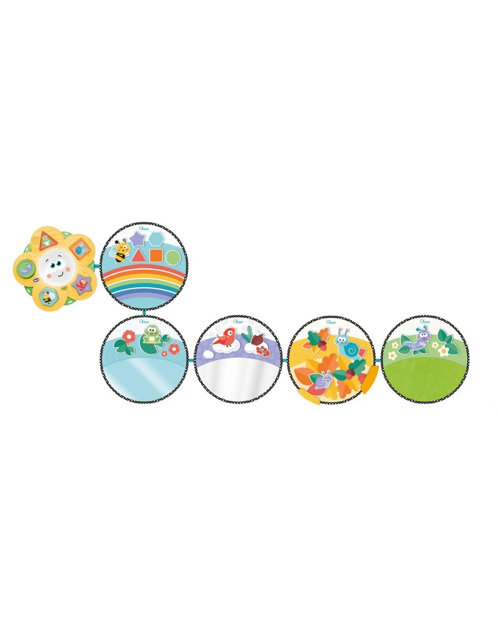 Il Sentiero delle Stagioni di Chicco è un morbido percorso composto da 5 dischi in tessuto pensato per stimolare i sensi e la capacità di concentrazione del tuo bambino. Ogni disco rappresenta una stagione con l’aggiunta di un disco che rappresenta l’arcobaleno; ciascuno offre stimoli sensoriali differenti per aiutare