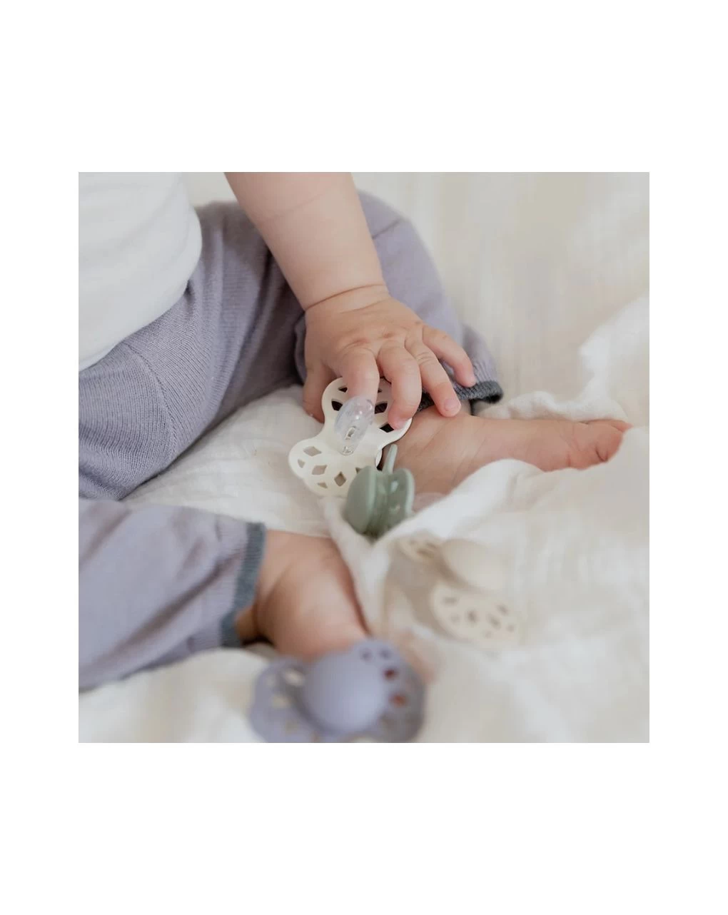 Pulire e sterilizzare il ciuccio giornalmente immergendolo in acqua calda. Si consiglia di non sterilizzare il prodotto in microonde, di non usare detergenti e di non lavare in lavastoviglie. Disegnato e prodotto in Danimarca. Sostituire i ciucci ogni 4-6 settimane.