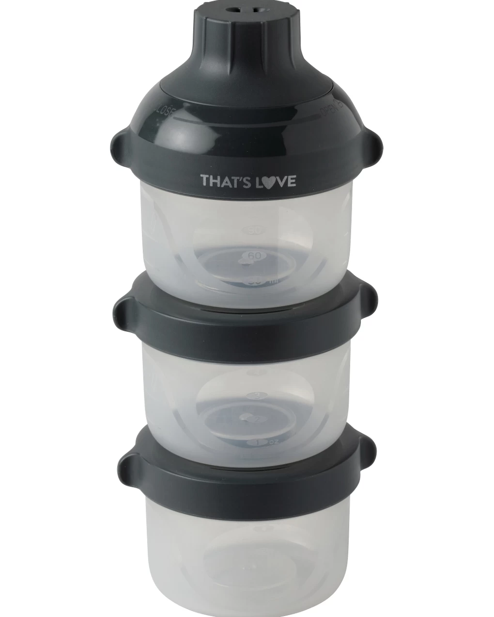 Pratico set composto da 3 contenitori con coperchio. Utilissimo per trasportare facilmente pappe/latte.