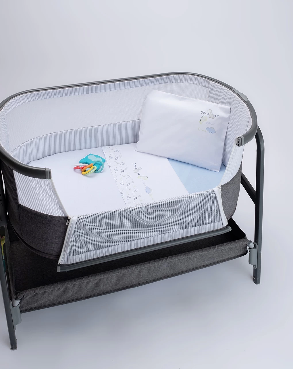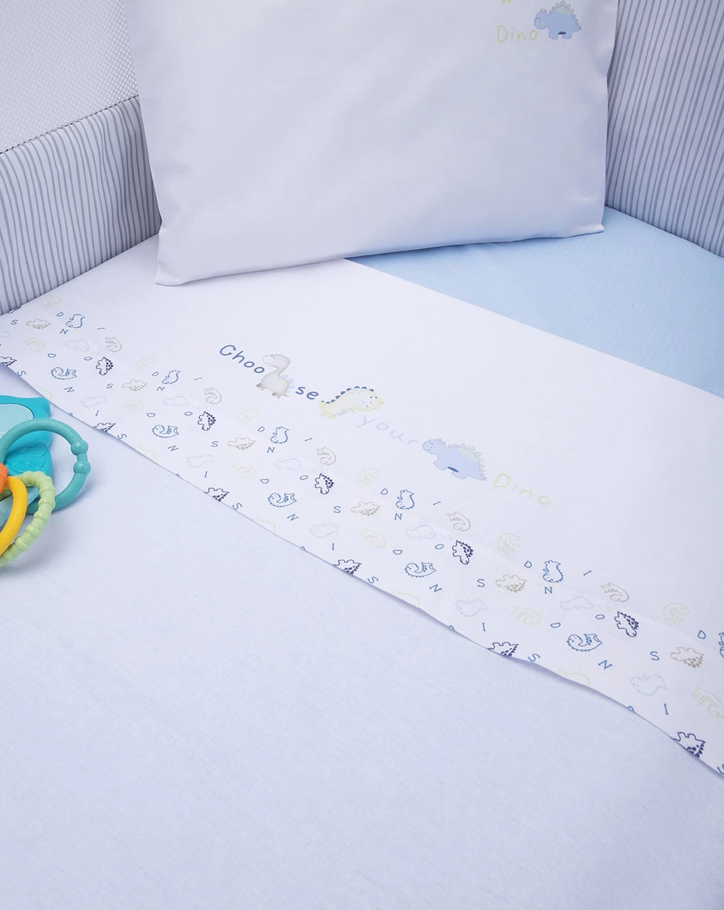 Tenero set culla/carrozzina 3 pezzi da bambino in 100% cotone. I capi si sviluppano su sfondo bianco con stampa stilizzati “Dino” in varie tonalità di blu e verde. Il set è pratico e confortevole. Accessori non in vendita. La confezione contiene solo il capo d’abbigliamento